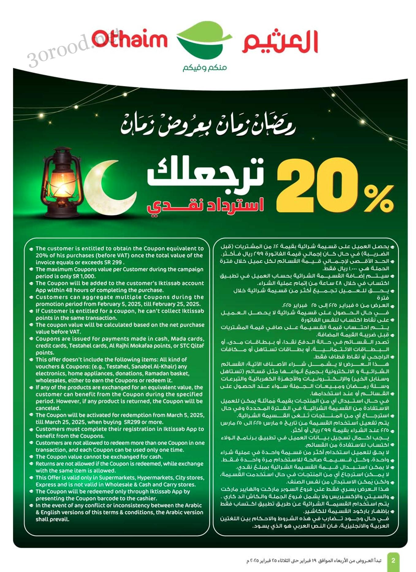 عروض العثيم السعودية اليوم 19 فبراير حتى 25 فبراير 2025 عروض 20% استرداد نقدى • عروض نت