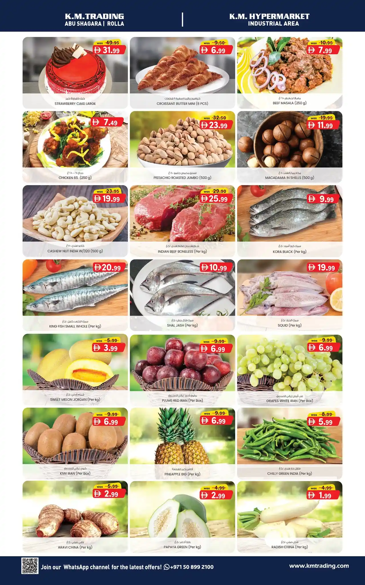 يوفر قسم السوبر ماركت لدينا منتجات الألبان الطازجة والفواكه والخضروات والملاحم والأسماك وطاولات المخابز إلى جانب منتجات الحلويات والبقالة الأخرى. تقدم متاجرنا الكبرى مجموعة واسعة من المنتجات التي تشمل الملابس والأزياء والعطور ولعب الأطفال والأمتعة والأحذية والمستجدات ومستحضرات التجميل والمنتجات المنزلية والساعات والكاميرات والهواتف المحمولة والأدوات الإلكترونية.