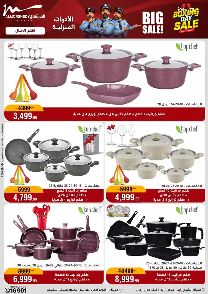 عروض جديدة من أسواق المرشدي مع اكبر مهرجان للتخفيضات في مصر خصومات حتى 70% وقسط براحتك بدون فوائد بأسعار العروض المخفضة على 12 شهر لحاملي بطاقة ائتمان CIB أو قسط براحتك مع VALU بدون مقدم حتى 60 شهر أو بدون مقدم وبدون فوائد مع نظام هاتريك وكمان النقل مجاني للقاهرة والجيزة والقليوبية على قسم الأجهزة الكهربائية والموبيليا والمراتب ( تطبق شروط المكان ) خصومات على جميع الأقسام أدوات منزلية – اجهزة كهربائية – مفروشات – موبيليا – نجف – سجاد – مراتب – ملابس رجالي وحريمي وأطفالي ومستلزمات ولعب الأطفال وجاليري وأقسام تانية كتير استمتع بالتسوق في أسواق المرشدي مع أكتر من 12 قسم و أكثر من 10,000 منتج يعني كل اللي بتحلم بيه عند المرشدي هتلاقيه