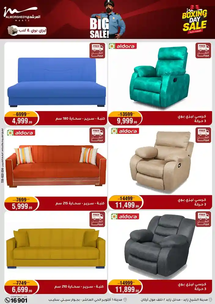عروض جديدة من أسواق المرشدي  مع اكبر مهرجان للتخفيضات في مصر خصومات حتى 70%  وقسط براحتك بدون فوائد بأسعار العروض المخفضة على 12 شهر لحاملي بطاقة ائتمان CIB أو قسط براحتك مع VALU بدون مقدم حتى 60 شهر أو بدون مقدم وبدون فوائد مع نظام هاتريك وكمان النقل مجاني للقاهرة والجيزة والقليوبية على قسم الأجهزة الكهربائية والموبيليا والمراتب ( تطبق شروط المكان ) خصومات على جميع الأقسام أدوات منزلية – اجهزة كهربائية – مفروشات – موبيليا – نجف – سجاد – مراتب – ملابس رجالي وحريمي وأطفالي ومستلزمات ولعب الأطفال وجاليري وأقسام تانية كتير استمتع بالتسوق في أسواق المرشدي مع أكتر من 12 قسم و أكثر من 10,000 منتج يعني كل اللي بتحلم بيه عند المرشدي هتلاقيه