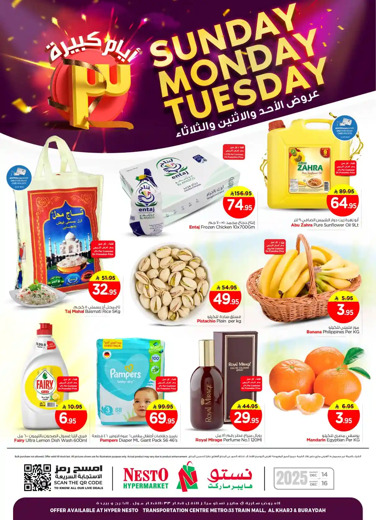 عروض نستو الرياض سارية من 14 ديسمبر حتى 16 ديسمبر 2025 الاحد والاثنين والثلاثاء فى فروع نستو الرياض و نستو البطحاء و نستو العزيزية و نستو المدينة الصناعية و نستو الملز و نستو الرس و نستو شقراء و نستو المجمعة و نستو فيلاجيو مول و نستو بريدة