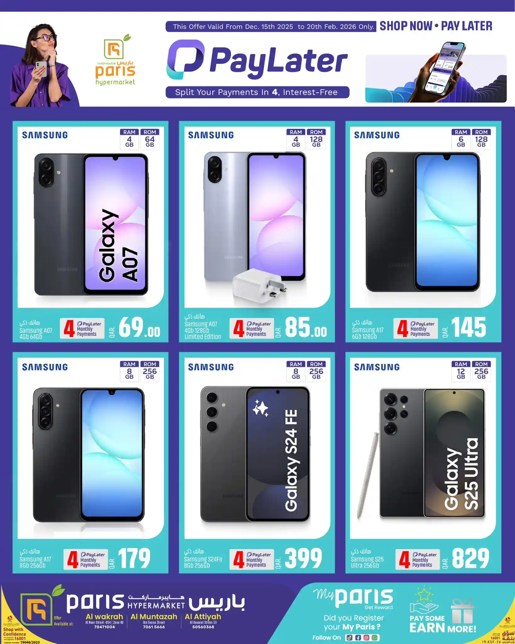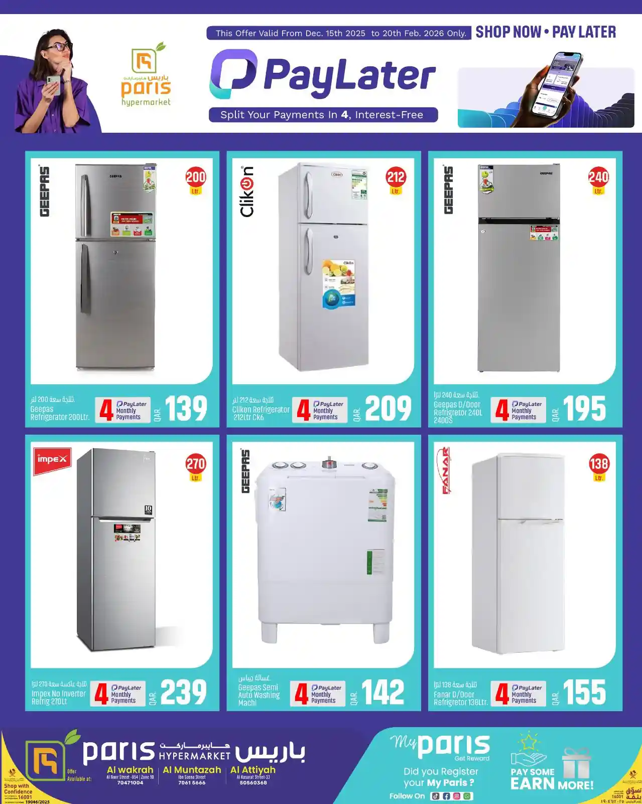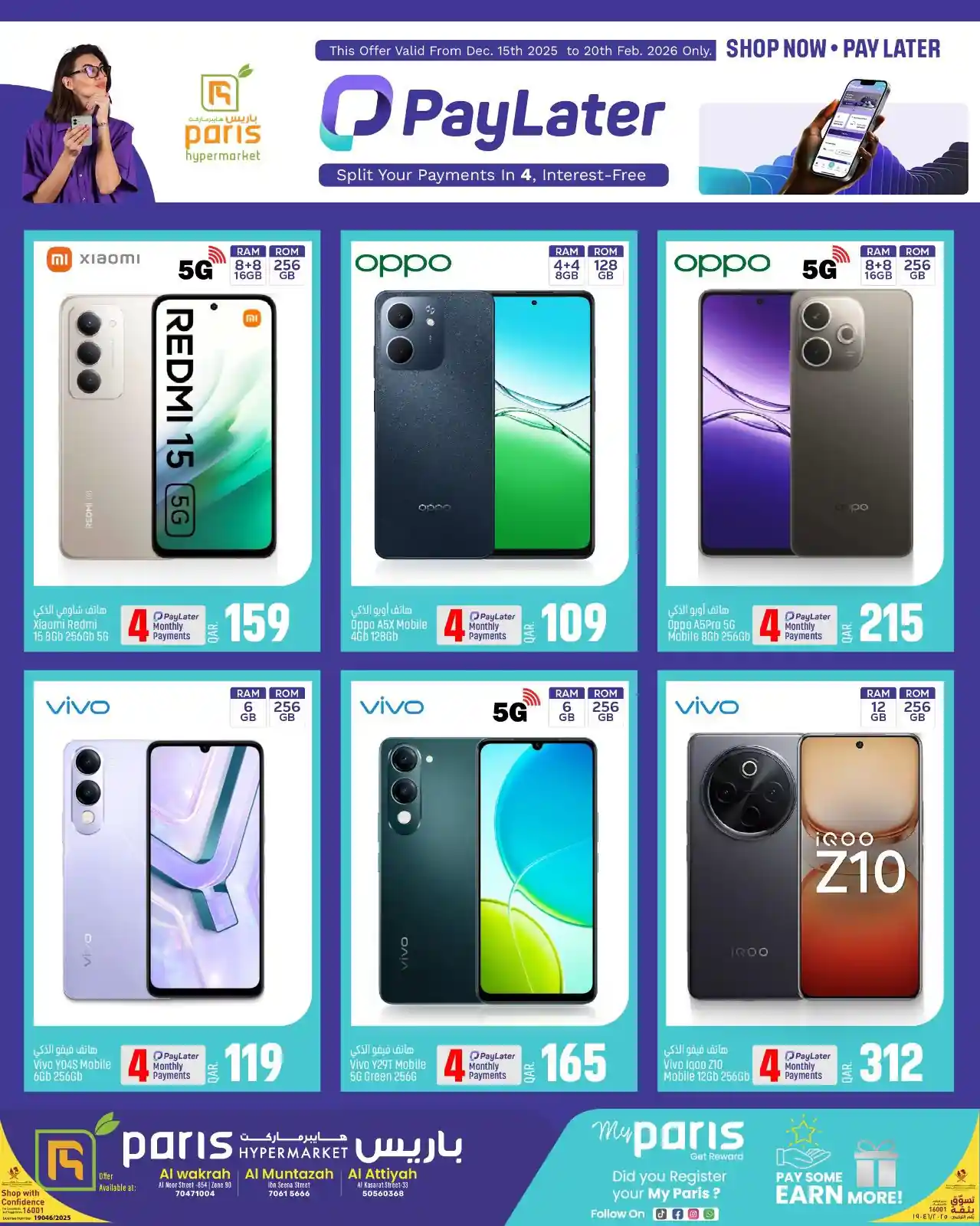 عروض نت تقدم لكم احدث عروض باريس هايبر قطر اليوم الجديدة فى صفحة واحدة اليوم 15 ديسمبر حتى 20 فبراير 2026 تقسيط الاليكترونيات العروض الاسبوعية من باريس هايبر ماركت