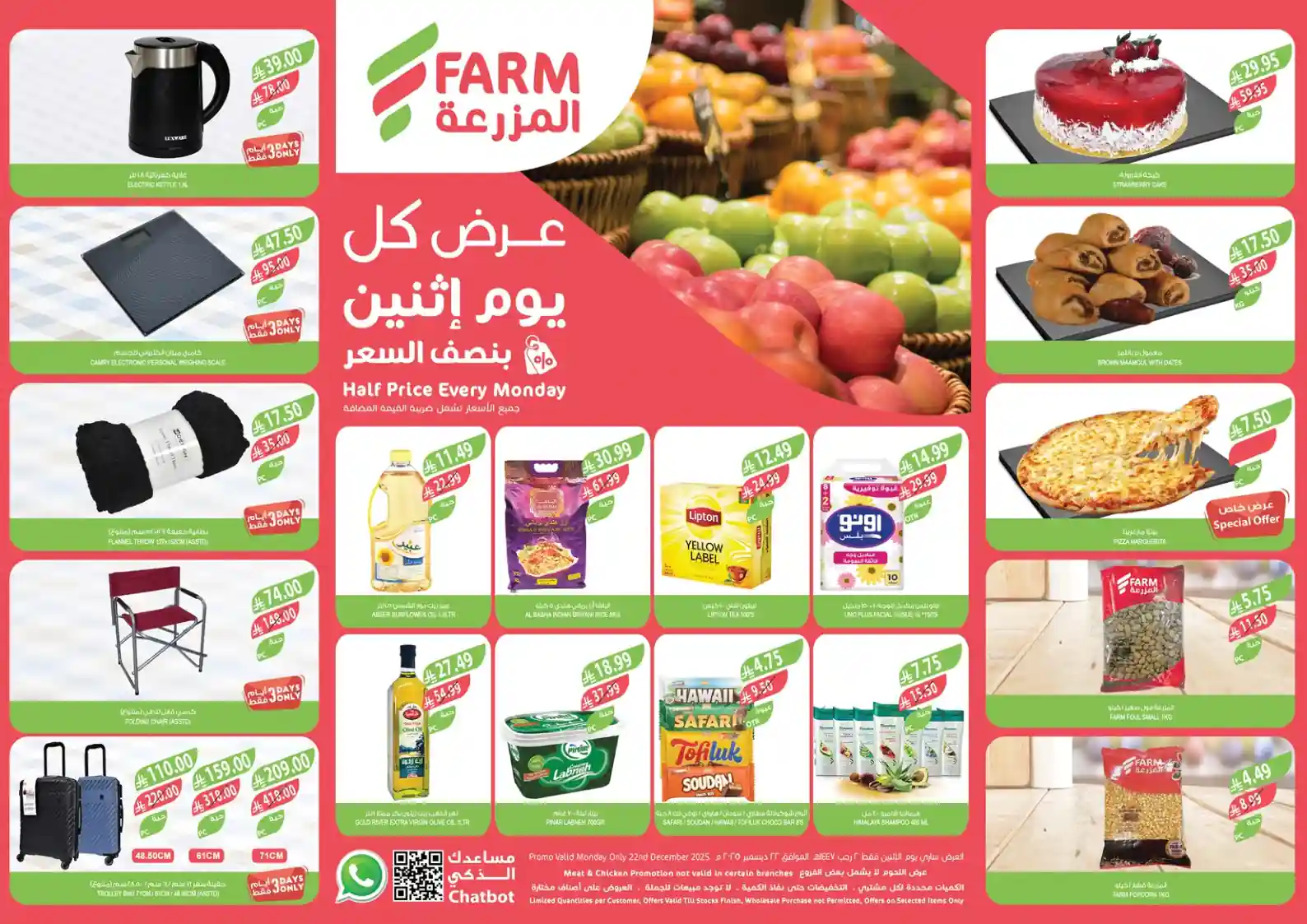 عروض نت تقدم لكم احدث عروض اسواق المزرعة السعودية الجديدة فى صفحة واحدة – عروض كل اثنين بنصف الثمن من اسواق المزرعة – و ذلك يوم الاثنين 22 ديسمبر 2025 او حتى نفاذ الكمية من اسواق المزرعة هايبر ماركت بجميع الفروع.