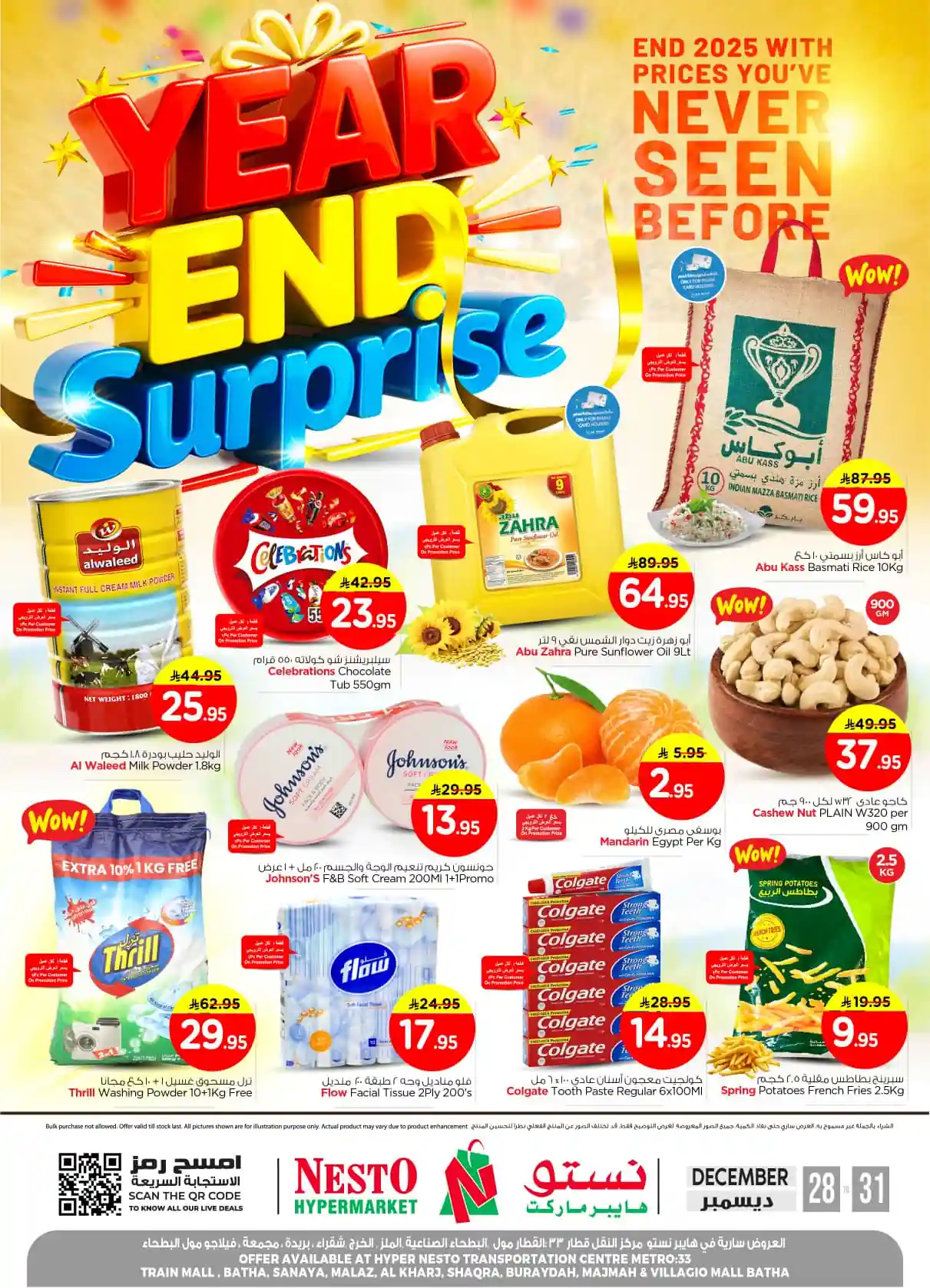 عروض نستو الرياض سارية من 28 ديسمبر حتى 31 ديسمبر 2025 فى فروع نستو الرياض و نستو البطحاء و نستو العزيزية و نستو المدينة الصناعية و نستو الملز و نستو الرس و نستو شقراء و نستو المجمعة و نستو فيلاجيو مول و نستو بريدة