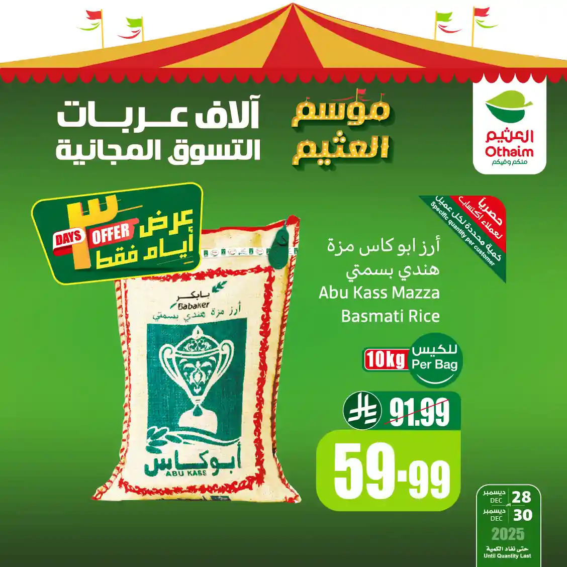 عروض نت تقدم لكم احدث عروض العثيم السعودية اليوم الجديدة فى صفحة واحدة – العروض الاسبوعية من اسواق العثيم هايبر ماركت – و ذلك من 28 ديسمبر حتى 30 ديسمبر 2025 موسم العثيم او حتى نفاذ الكمية من اسواق عبد الله العثيم السعودية بجميع الفروع.