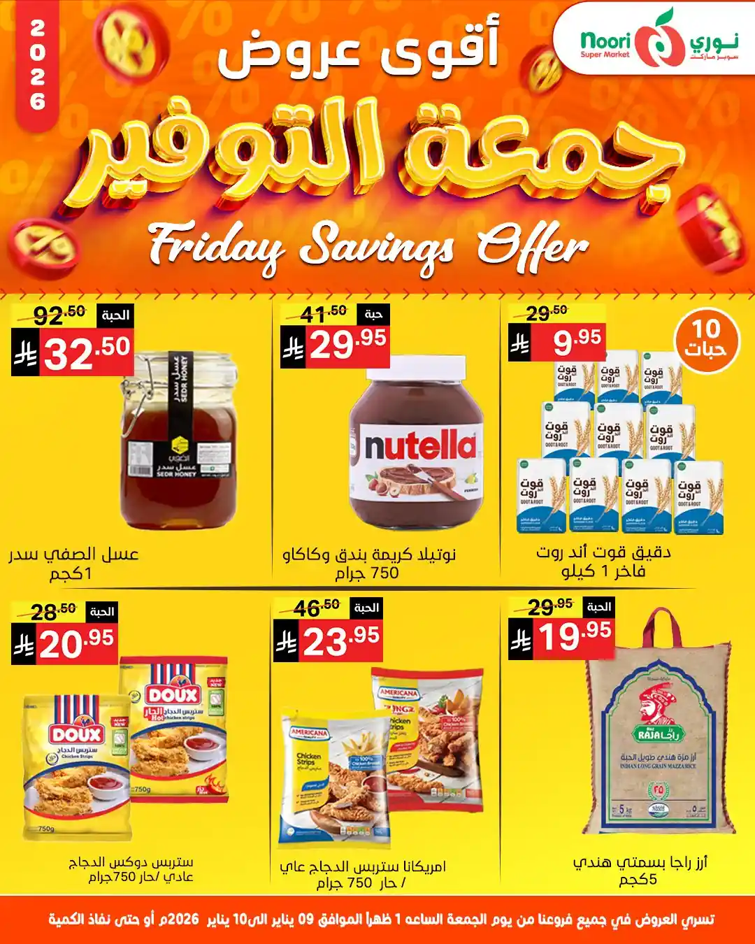 عروض نورى السعودية اليوم سارية من 9 و 10 يناير 2026 جمعة التوفير او حتى نفاذ الكمية فى فروع نورى مكة المكرمة و نورى العزيزية و نورى العتيبية و نورى شارع الحج و نورى جبل النور و نورى الشرقية و نورى الشرائع