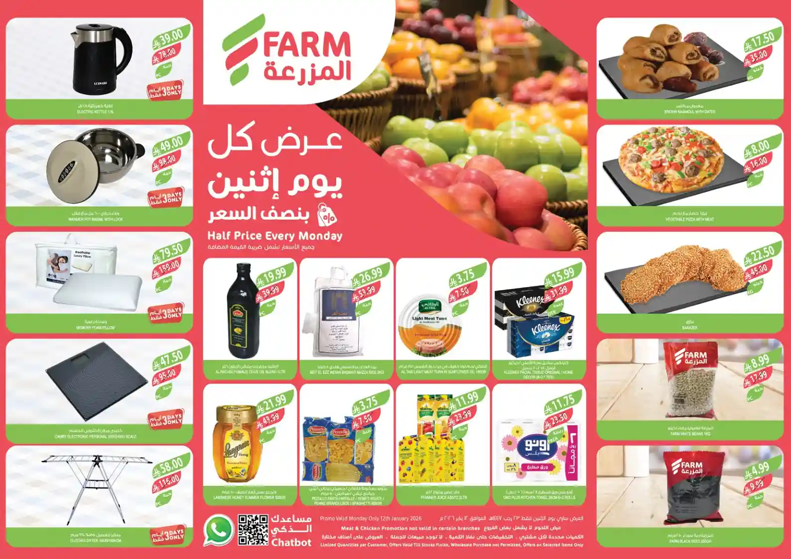 عروض نت تقدم لكم احدث عروض اسواق المزرعة السعودية الجديدة فى صفحة واحدة – عروض كل اثنين بنصف الثمن من اسواق المزرعة – و ذلك يوم الاثنين 12 يناير 2026 او حتى نفاذ الكمية من اسواق المزرعة هايبر ماركت بجميع الفروع.
