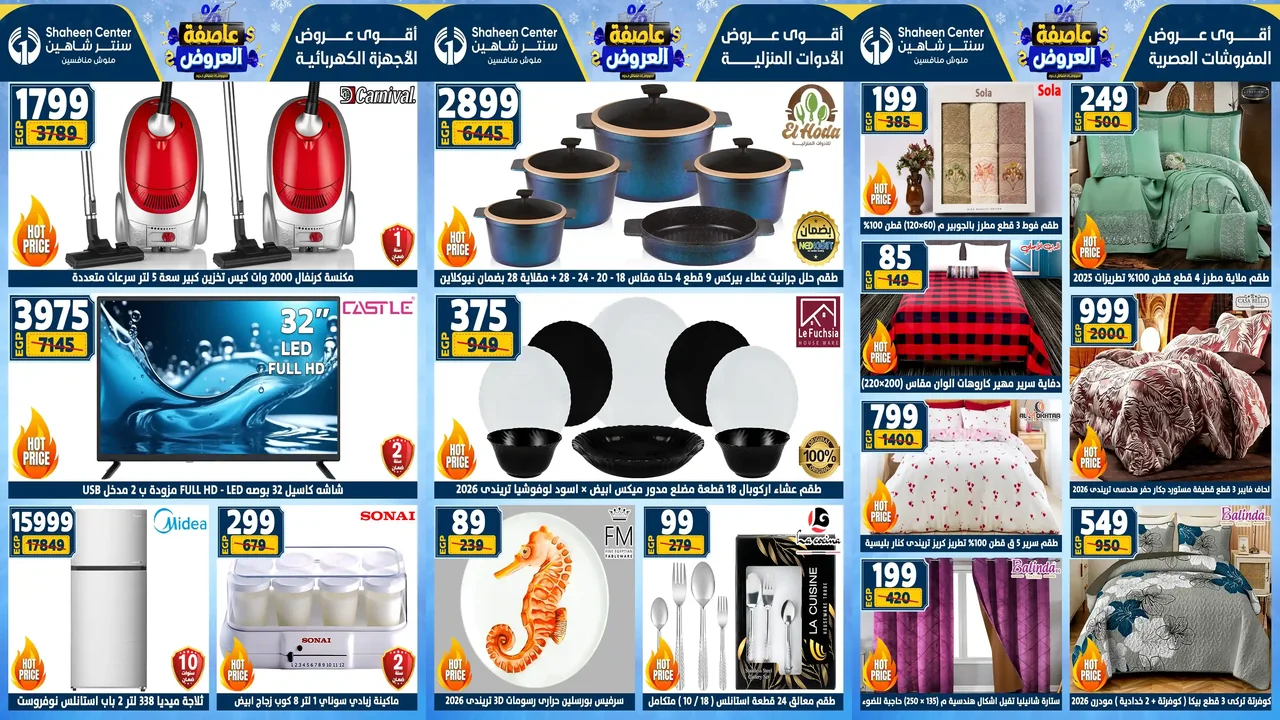 سنتر شاهين يقدم عروض يومية واسبوعية تشمل على عروض الادوات المنزلية و عروض الاجهزة الكهربائية و عروض المفروشات و عروض الملابس و عروض مستلزمات المنزل والمطبخ عروض سنتر شاهين