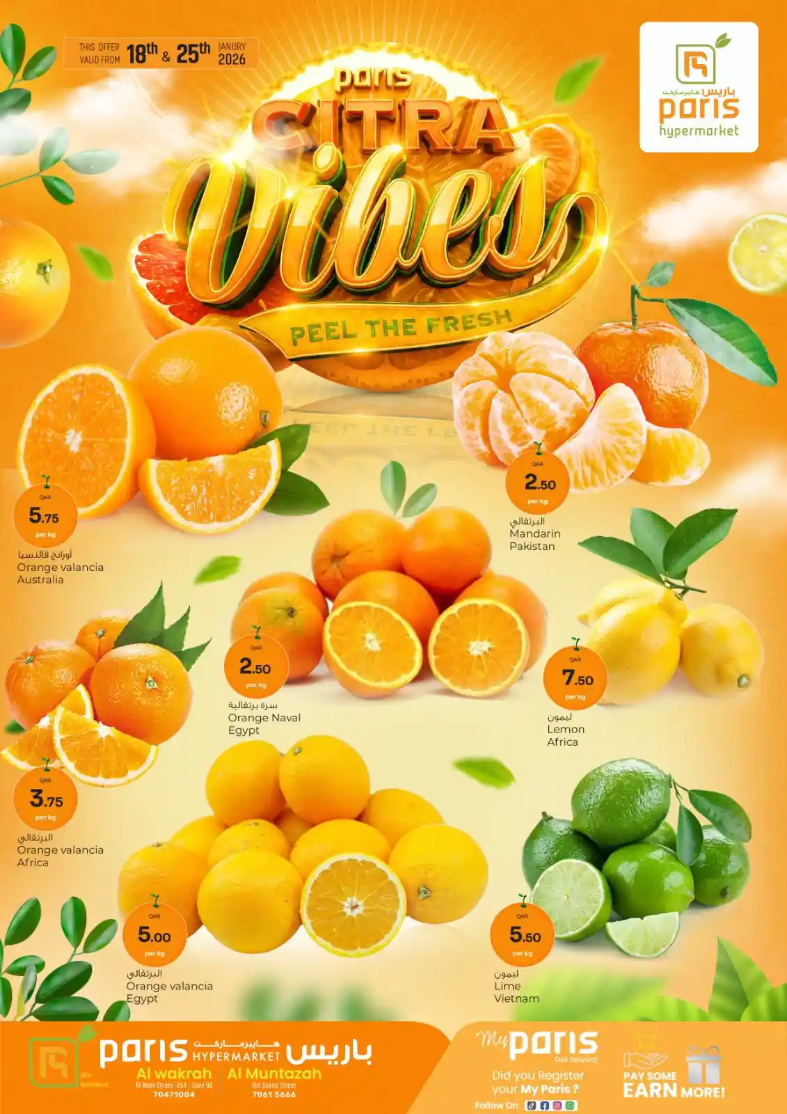 عروض باريس هايبر قطر اليوم 18 يناير حتى 25 يناير 2026 مهرجان الحمضيات • عروض نت