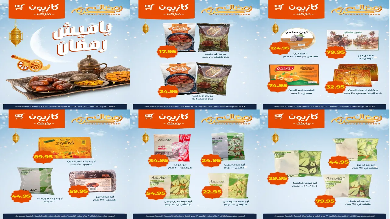العروض الجديدة من كازيون تسرى من 20 يناير حتى 26 يناير 2026 ياميش رمضان فى جميع فروع كازيون