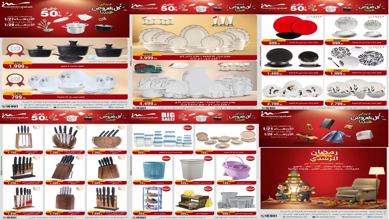 عروض جديدة من أسواق المرشدي  مع اكبر مهرجان للتخفيضات في مصر خصومات حتى 70%  وقسط براحتك بدون فوائد بأسعار العروض المخفضة على 12 شهر لحاملي بطاقة ائتمان CIB أو قسط براحتك مع VALU بدون مقدم حتى 60 شهر أو بدون مقدم وبدون فوائد مع نظام هاتريك وكمان النقل مجاني للقاهرة والجيزة والقليوبية على قسم الأجهزة الكهربائية والموبيليا والمراتب ( تطبق شروط المكان ) خصومات على جميع الأقسام أدوات منزلية – اجهزة كهربائية – مفروشات – موبيليا – نجف – سجاد – مراتب – ملابس رجالي وحريمي وأطفالي ومستلزمات ولعب الأطفال وجاليري وأقسام تانية كتير استمتع بالتسوق في أسواق المرشدي مع أكتر من 12 قسم و أكثر من 10,000 منتج يعني كل اللي بتحلم بيه عند المرشدي هتلاقيه