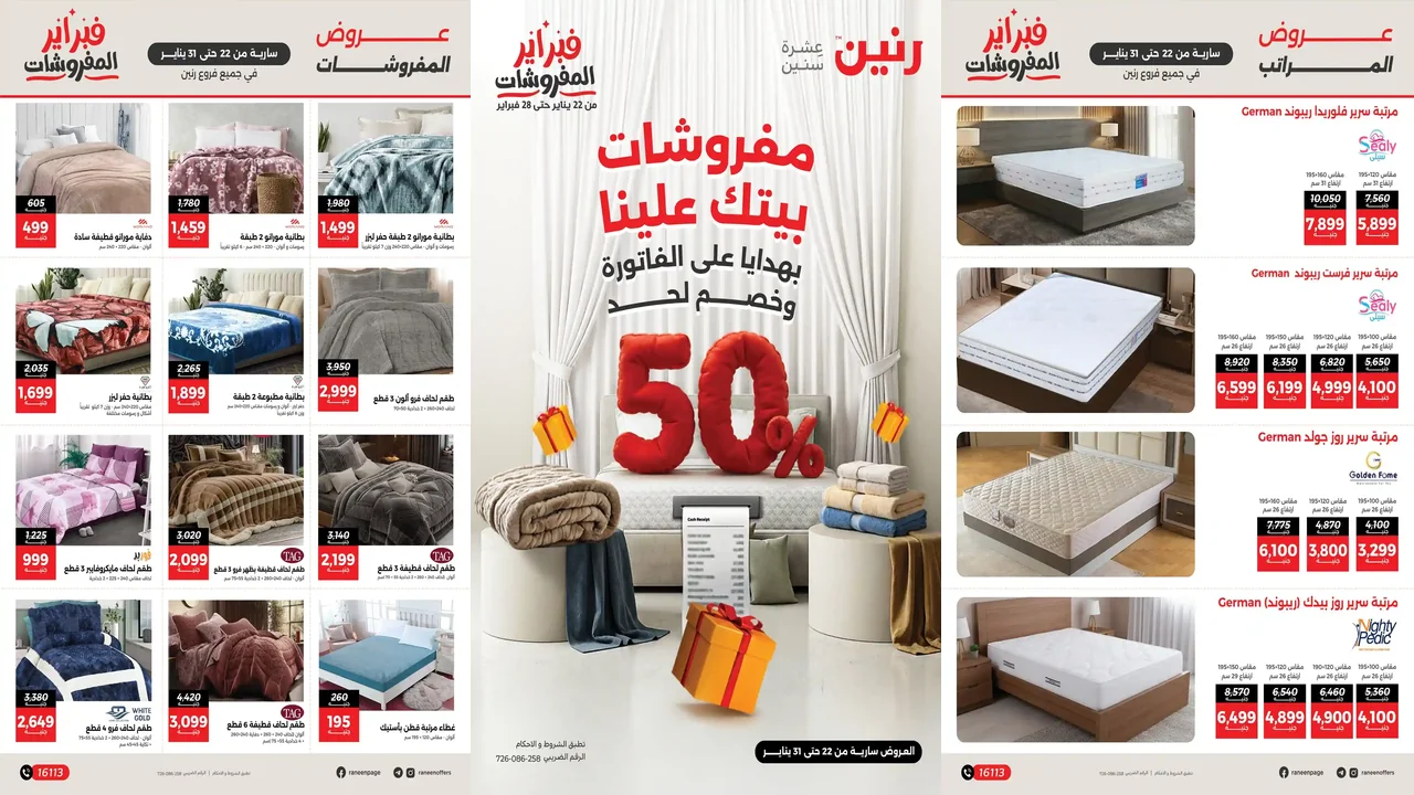 تسرى عروض رنين من يوم 22 يناير حتى 31 يناير 2026 خصومات المفروشات بجميع الفروع
