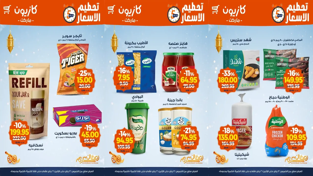 العروض الجديدة من كازيون تسرى من 22 يناير حتى 25 يناير 2026 تحطيم الاسعار فى جميع فروع كازيون