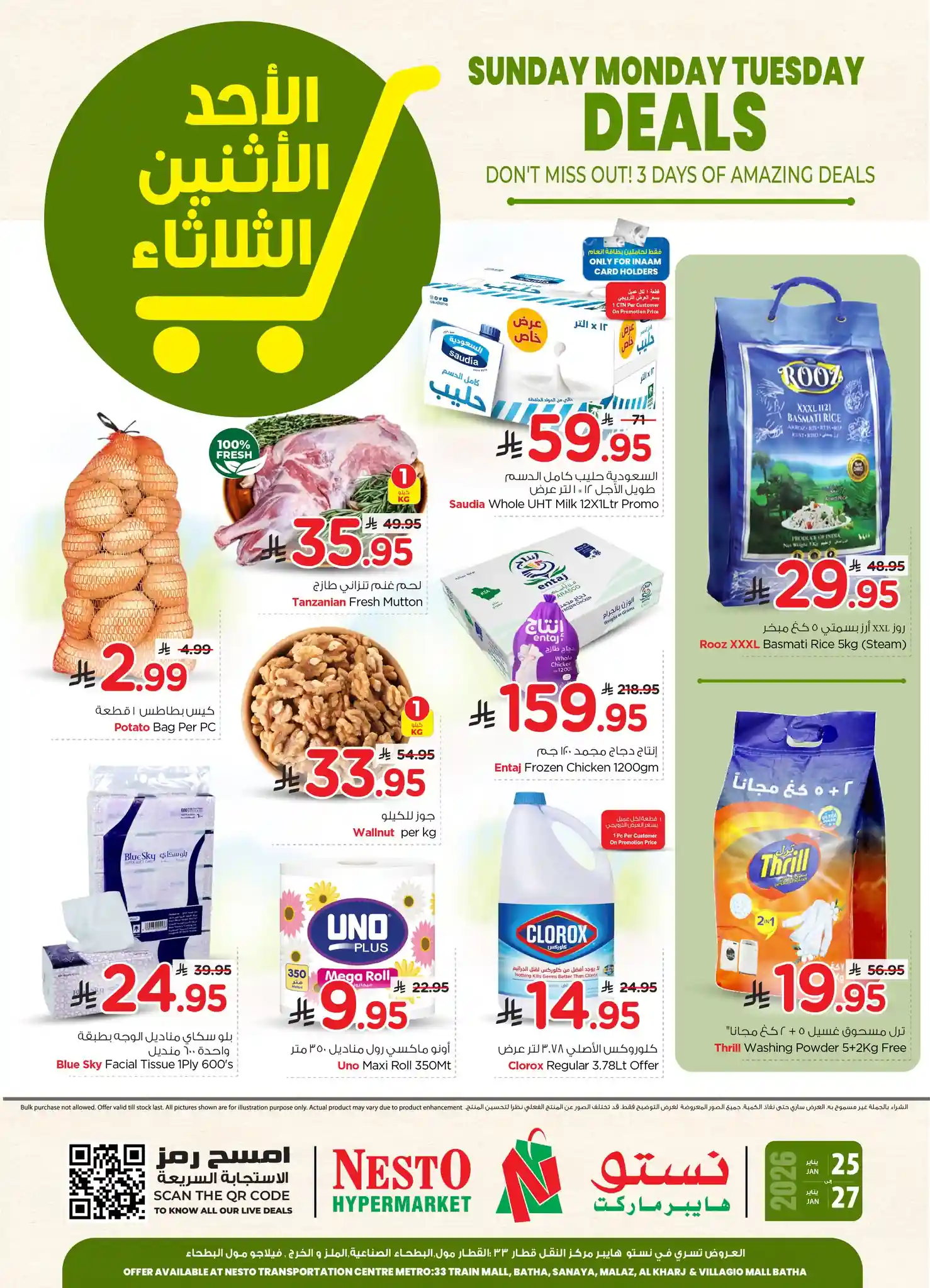 عروض نستو الرياض سارية من 25 يناير حتى 27 يناير 2026 الاحد والاثنين والثلاثاء فى فروع نستو الرياض و نستو البطحاء و نستو العزيزية و نستو المدينة الصناعية و نستو الملز و نستو الرس و نستو شقراء و نستو المجمعة و نستو فيلاجيو مول و نستو بريدة