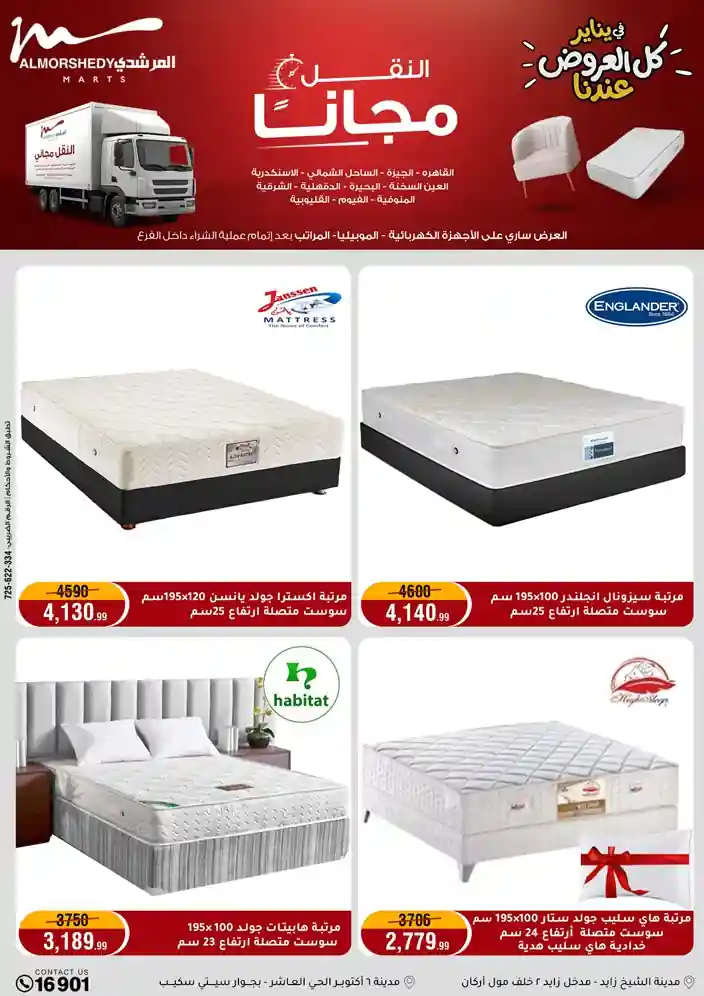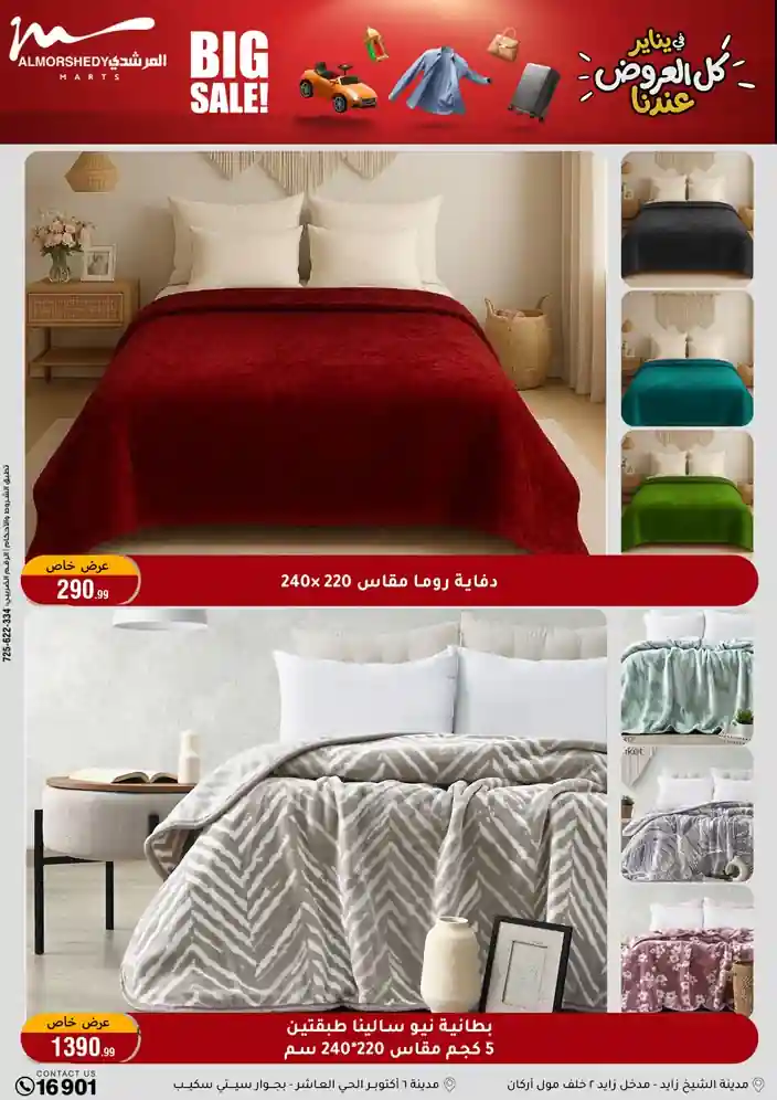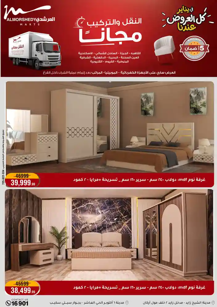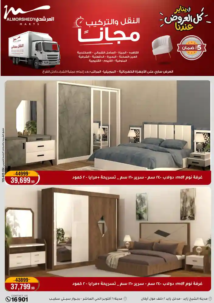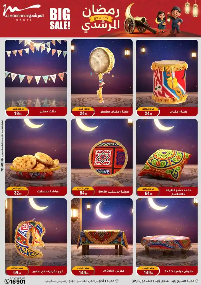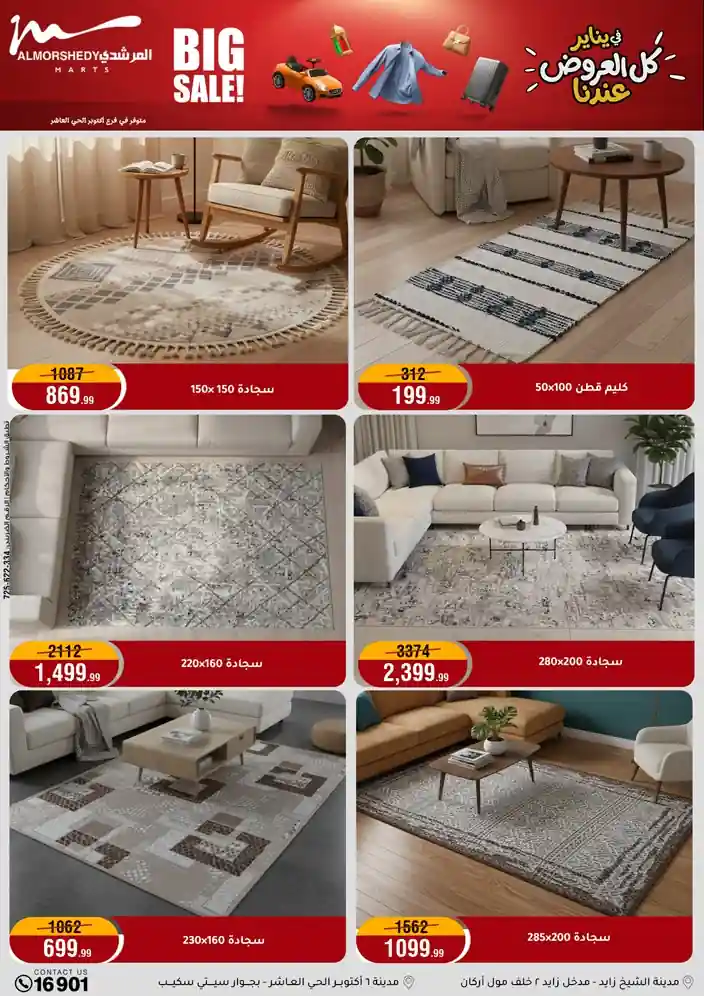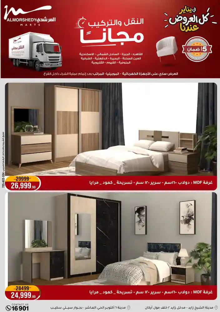 عروض جديدة من أسواق المرشدي مع اكبر مهرجان للتخفيضات في مصر خصومات حتى 70% وقسط براحتك بدون فوائد بأسعار العروض المخفضة على 12 شهر لحاملي بطاقة ائتمان CIB أو قسط براحتك مع VALU بدون مقدم حتى 60 شهر أو بدون مقدم وبدون فوائد مع نظام هاتريك وكمان النقل مجاني للقاهرة والجيزة والقليوبية على قسم الأجهزة الكهربائية والموبيليا والمراتب ( تطبق شروط المكان ) خصومات على جميع الأقسام أدوات منزلية – اجهزة كهربائية – مفروشات – موبيليا – نجف – سجاد – مراتب – ملابس رجالي وحريمي وأطفالي ومستلزمات ولعب الأطفال وجاليري وأقسام تانية كتير استمتع بالتسوق في أسواق المرشدي مع أكتر من 12 قسم و أكثر من 10,000 منتج يعني كل اللي بتحلم بيه عند المرشدي هتلاقيه