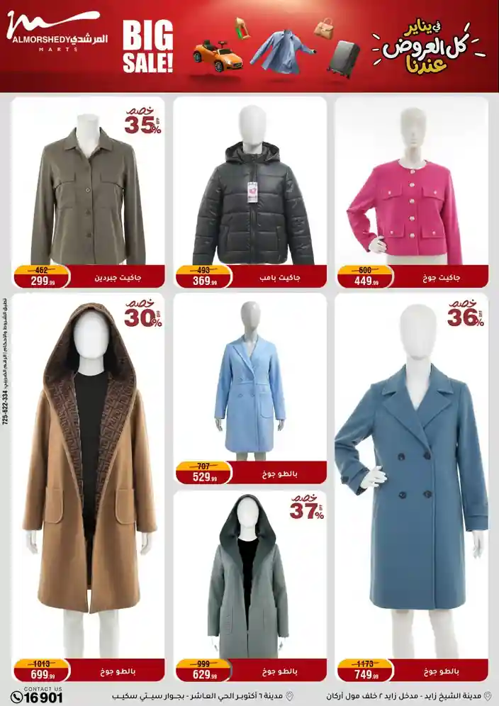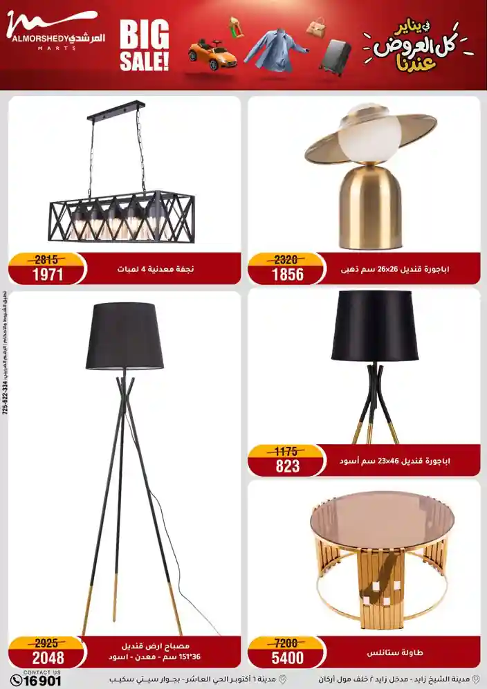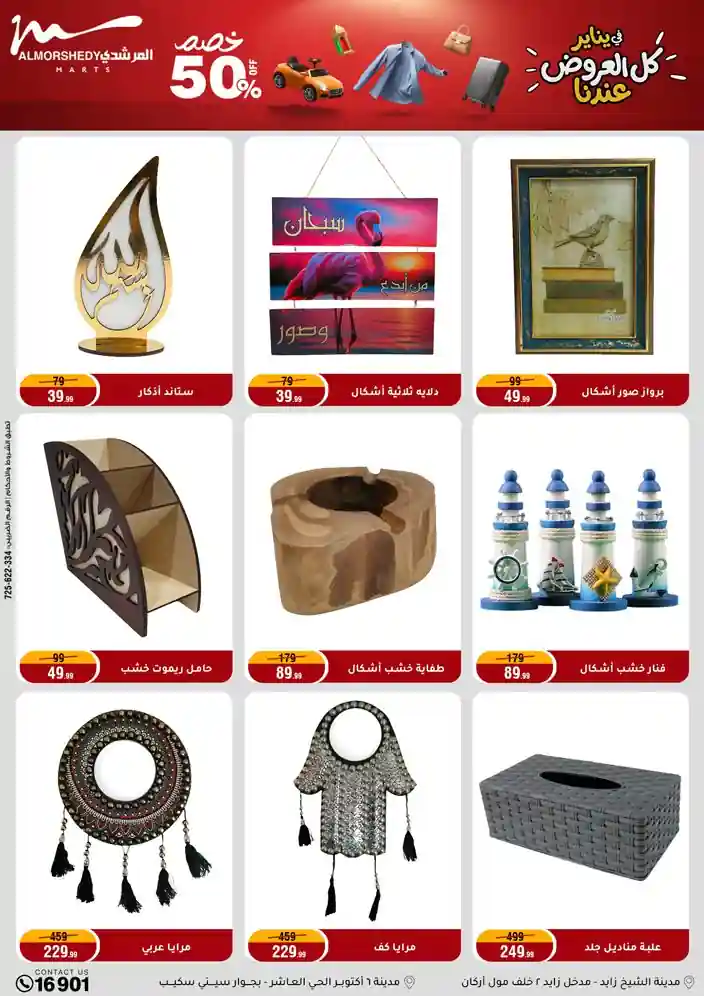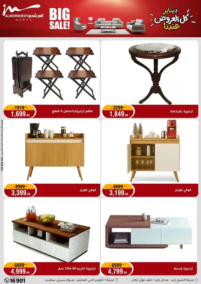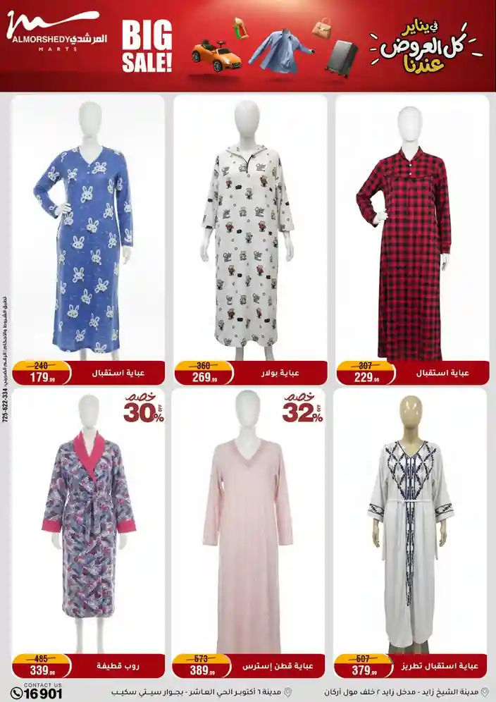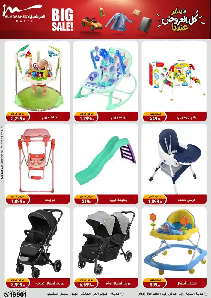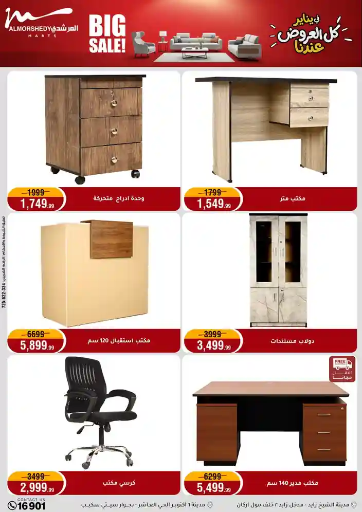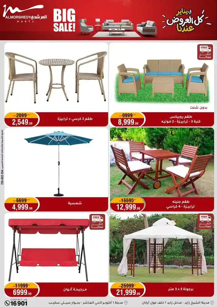 عروض جديدة من أسواق المرشدي مع اكبر مهرجان للتخفيضات في مصر خصومات حتى 70% وقسط براحتك بدون فوائد بأسعار العروض المخفضة على 12 شهر لحاملي بطاقة ائتمان CIB أو قسط براحتك مع VALU بدون مقدم حتى 60 شهر أو بدون مقدم وبدون فوائد مع نظام هاتريك وكمان النقل مجاني للقاهرة والجيزة والقليوبية على قسم الأجهزة الكهربائية والموبيليا والمراتب ( تطبق شروط المكان ) خصومات على جميع الأقسام أدوات منزلية – اجهزة كهربائية – مفروشات – موبيليا – نجف – سجاد – مراتب – ملابس رجالي وحريمي وأطفالي ومستلزمات ولعب الأطفال وجاليري وأقسام تانية كتير استمتع بالتسوق في أسواق المرشدي مع أكتر من 12 قسم و أكثر من 10,000 منتج يعني كل اللي بتحلم بيه عند المرشدي هتلاقيه