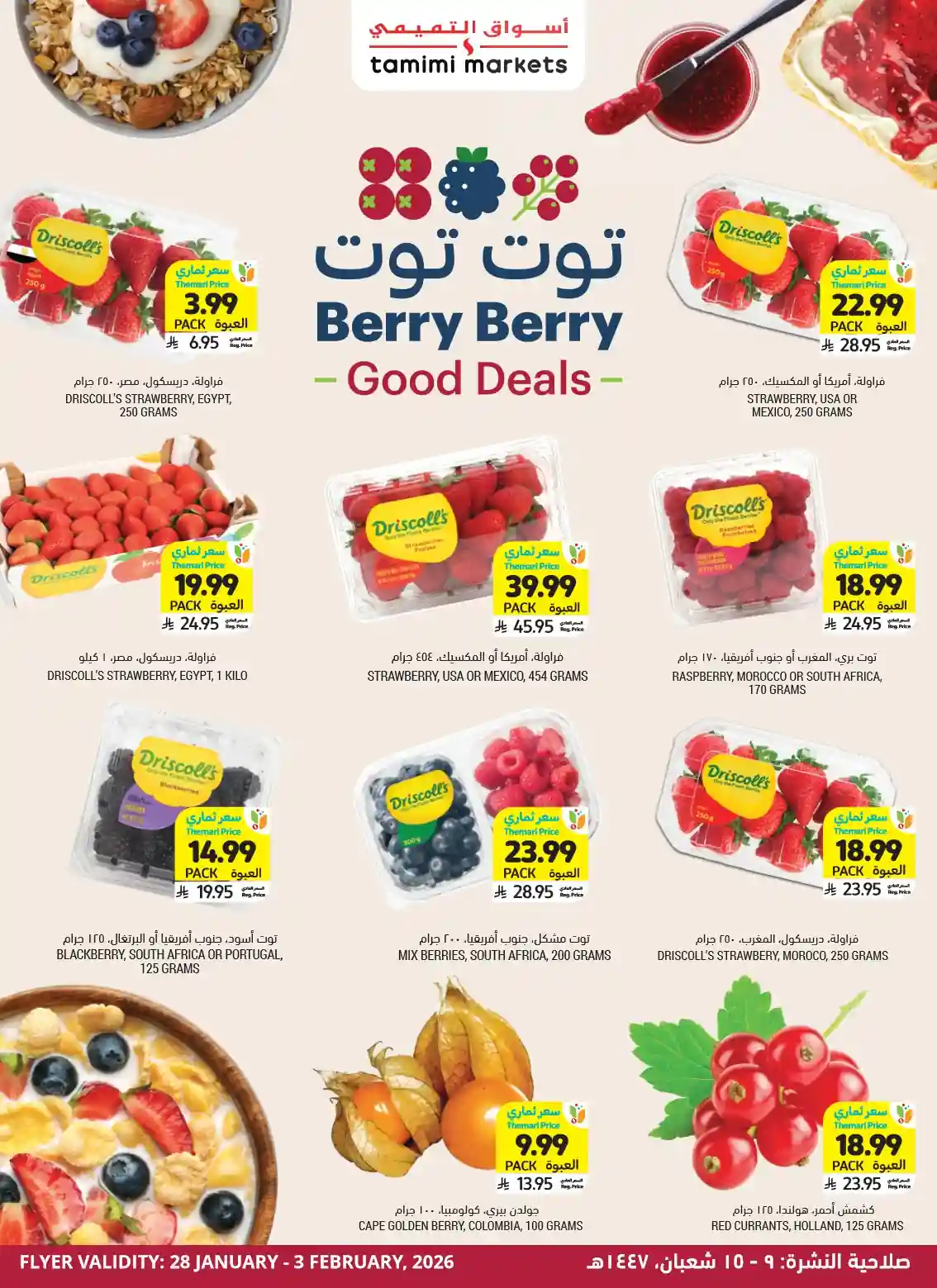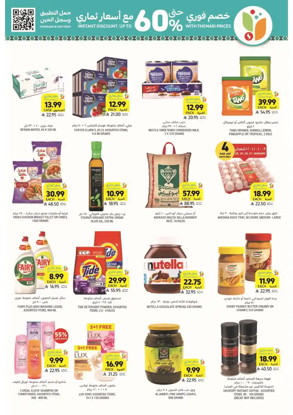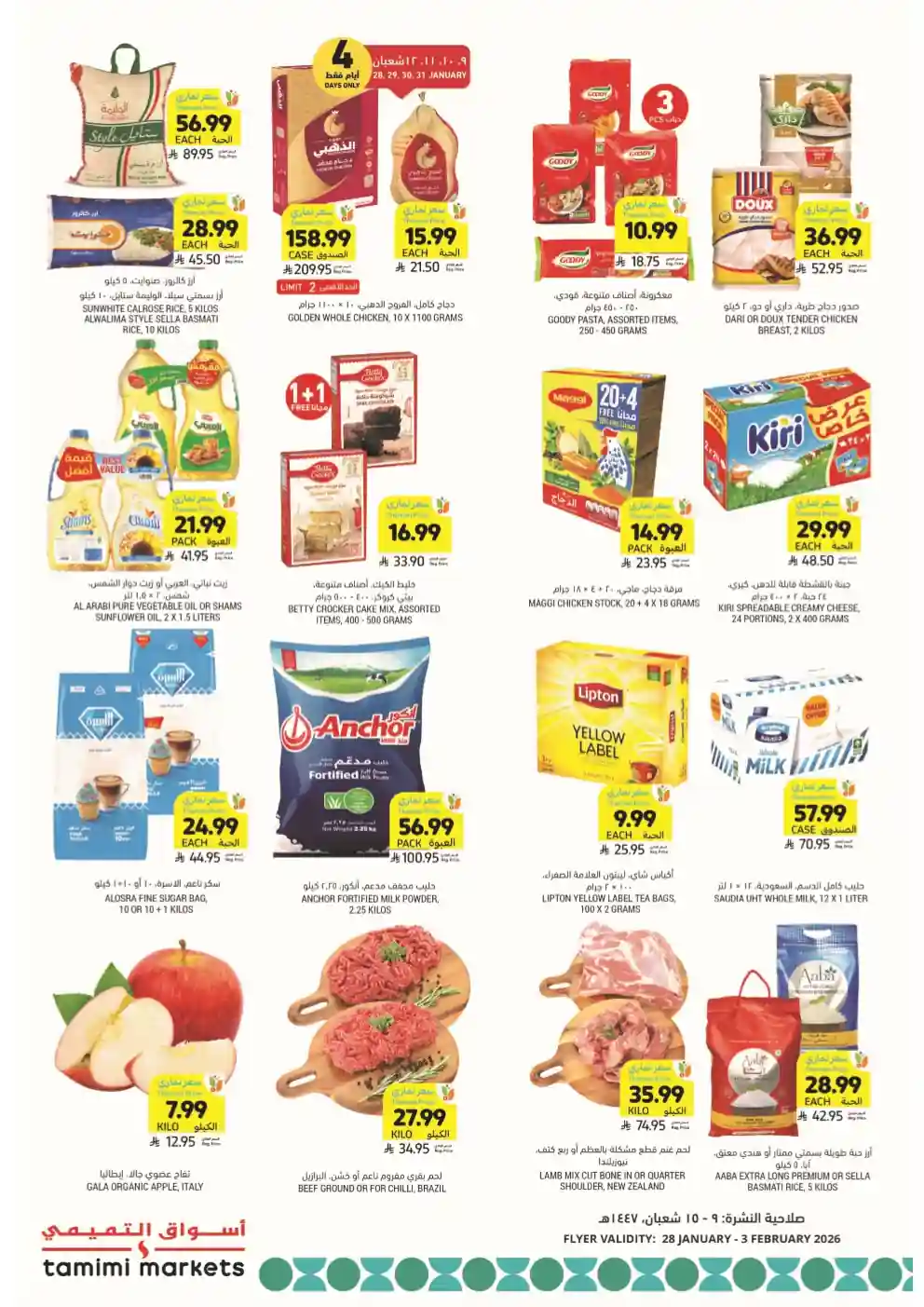عروض التميمى اليوم سارية من 28 يناير حتى 3 فبراير 2026 العروض الاسبوعية او حتى نفاذ الكمية فى فروع التميمى الدمام و التميمى الجبيل و التميمى حفر الباطن و التميمى الخبر و التميمى الاحساء و التميمى الظهران و التميمى الرياض و التميمى جدة و التميمى القصيم.