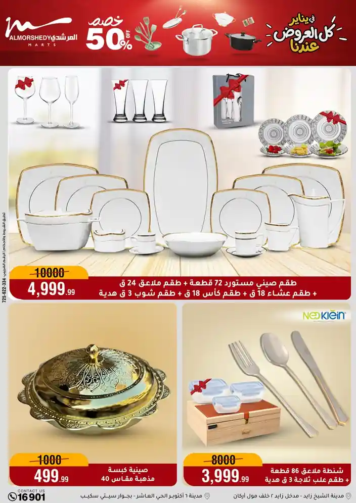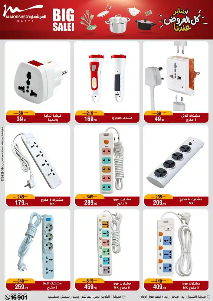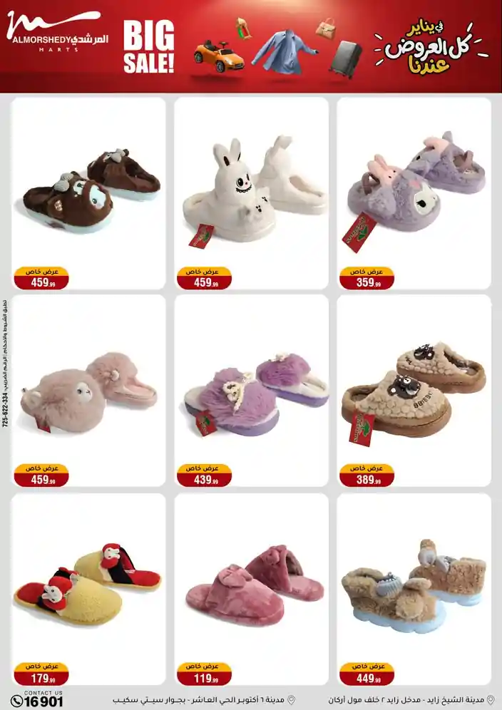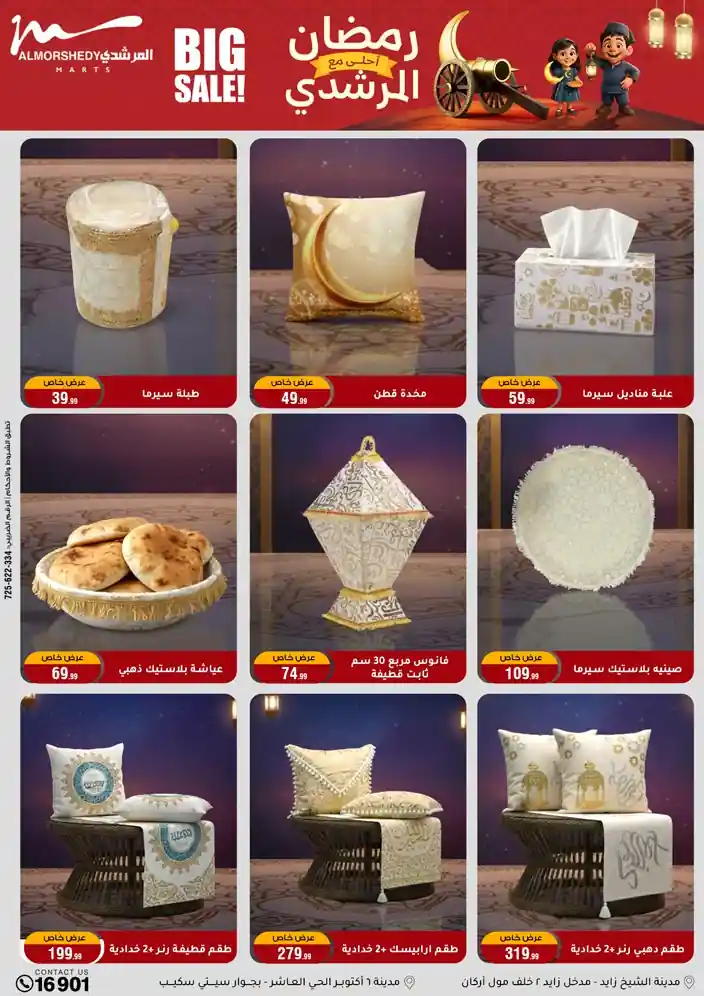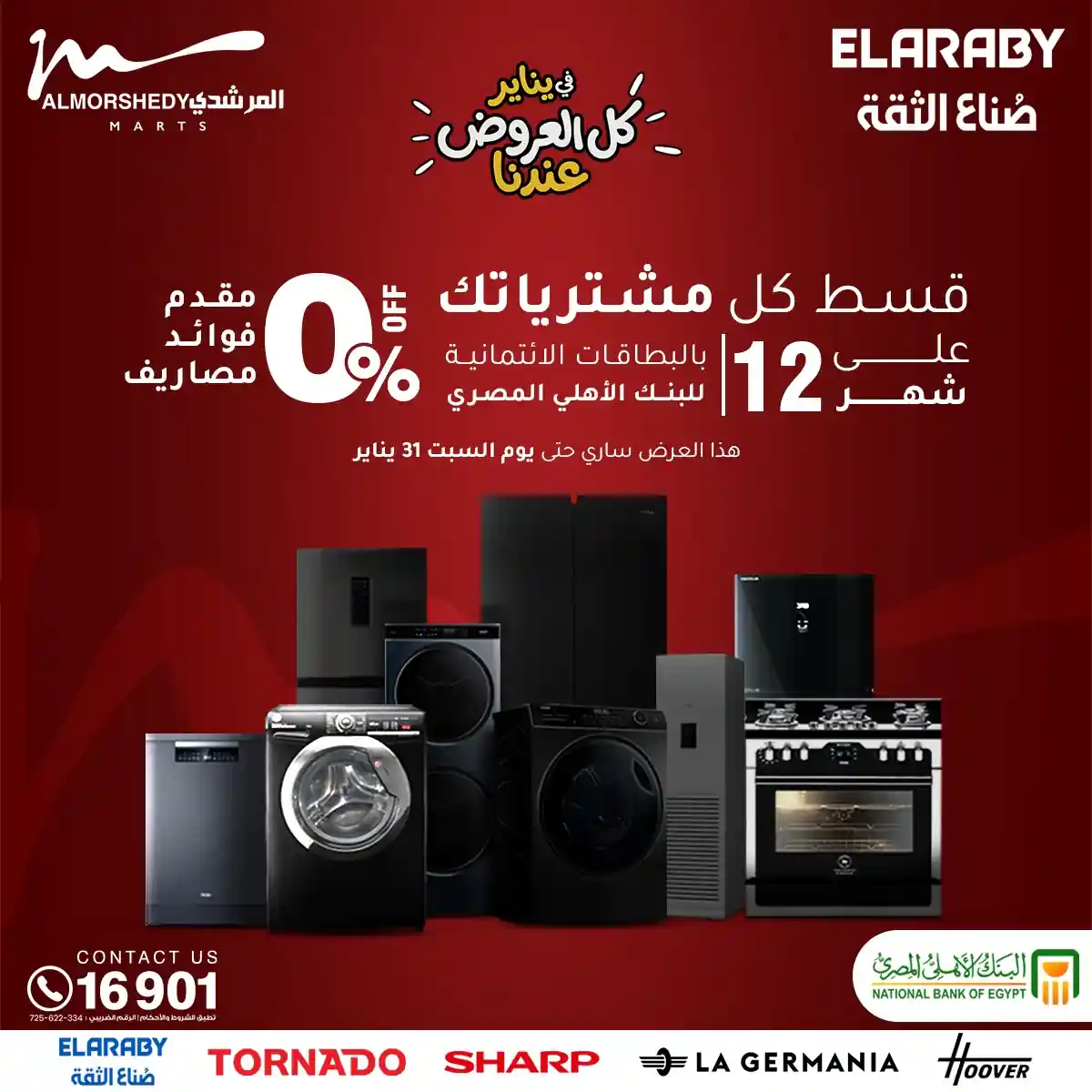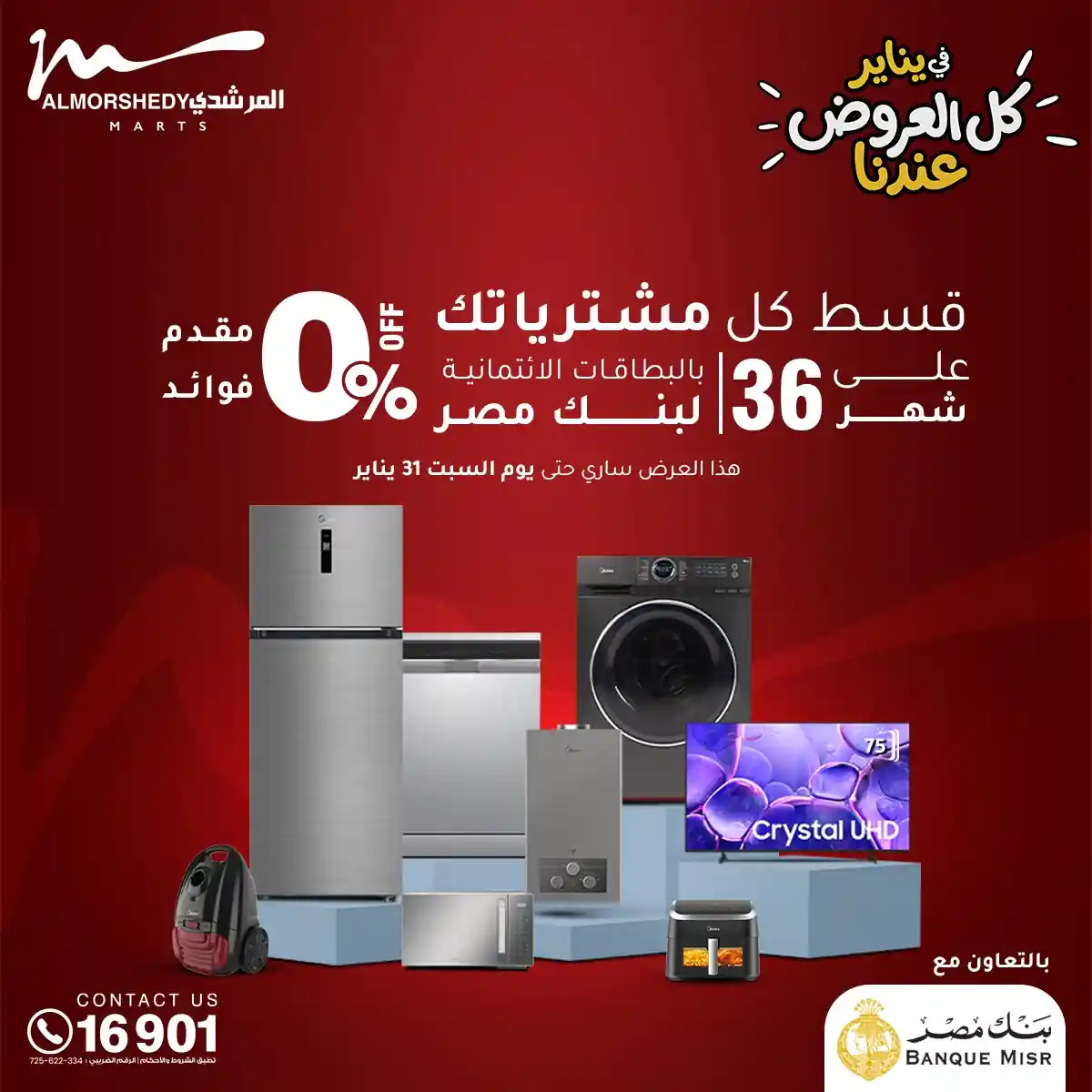 عروض جديدة من أسواق المرشدي  مع اكبر مهرجان للتخفيضات في مصر خصومات حتى 70%  وقسط براحتك بدون فوائد بأسعار العروض المخفضة على 12 شهر لحاملي بطاقة ائتمان CIB أو قسط براحتك مع VALU بدون مقدم حتى 60 شهر أو بدون مقدم وبدون فوائد مع نظام هاتريك وكمان النقل مجاني للقاهرة والجيزة والقليوبية على قسم الأجهزة الكهربائية والموبيليا والمراتب ( تطبق شروط المكان ) خصومات على جميع الأقسام أدوات منزلية – اجهزة كهربائية – مفروشات – موبيليا – نجف – سجاد – مراتب – ملابس رجالي وحريمي وأطفالي ومستلزمات ولعب الأطفال وجاليري وأقسام تانية كتير استمتع بالتسوق في أسواق المرشدي مع أكتر من 12 قسم و أكثر من 10,000 منتج يعني كل اللي بتحلم بيه عند المرشدي هتلاقيه