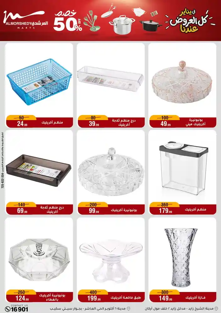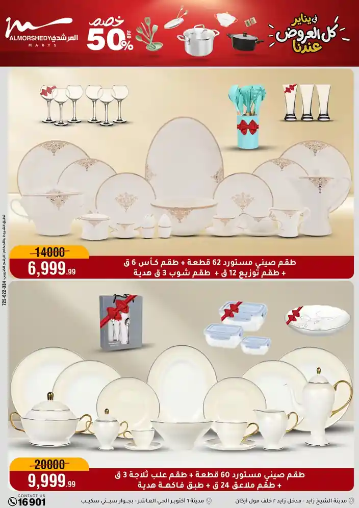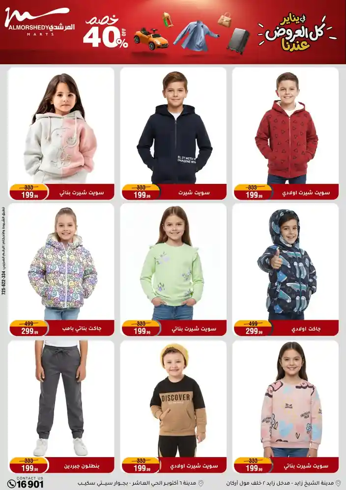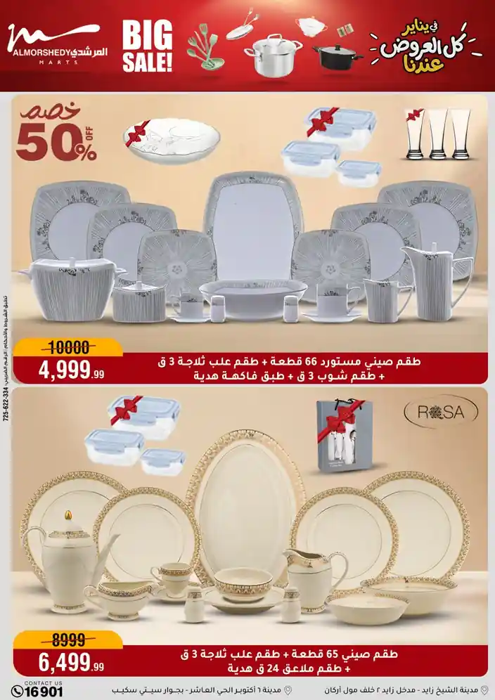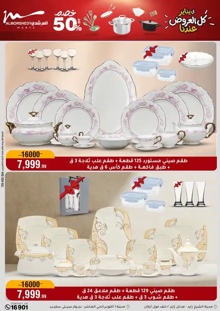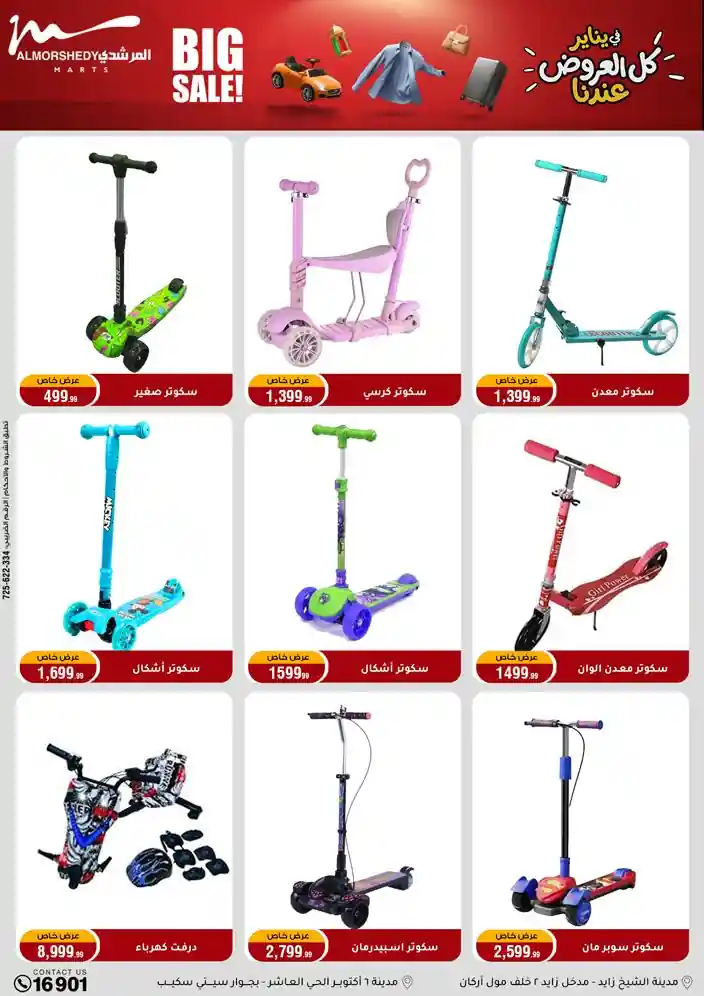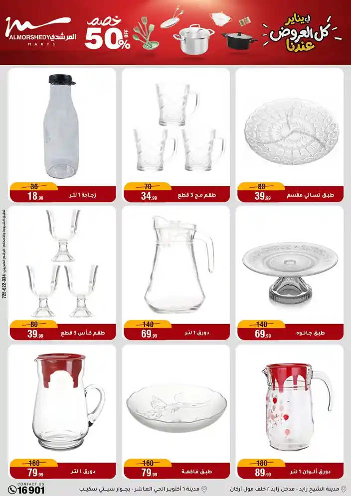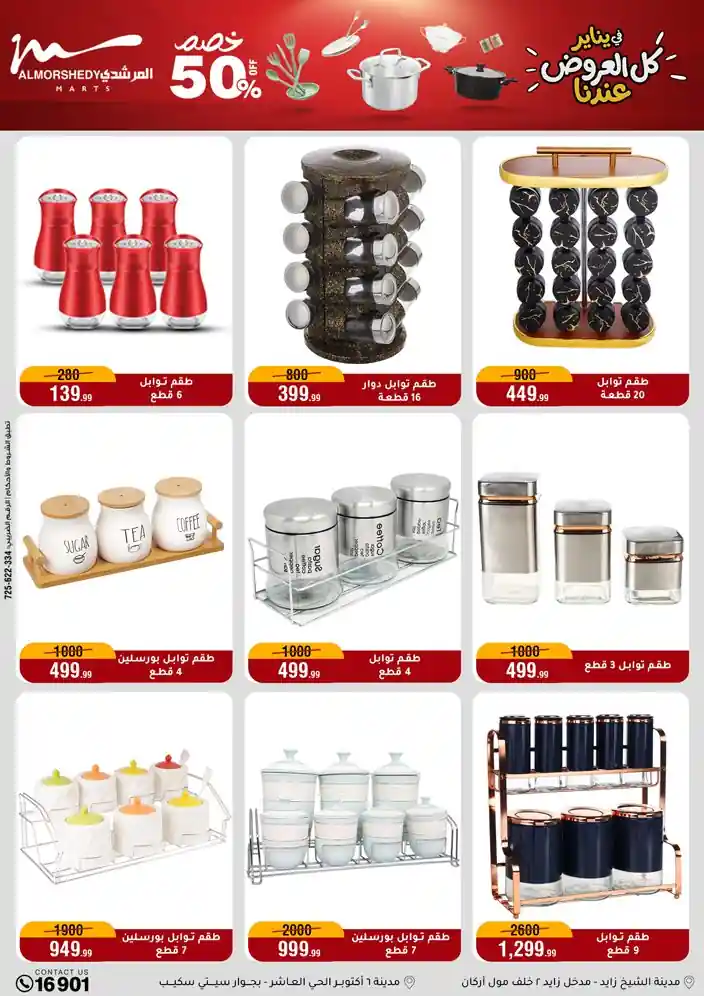 عروض جديدة من أسواق المرشدي  مع اكبر مهرجان للتخفيضات في مصر خصومات حتى 70%  وقسط براحتك بدون فوائد بأسعار العروض المخفضة على 12 شهر لحاملي بطاقة ائتمان CIB أو قسط براحتك مع VALU بدون مقدم حتى 60 شهر أو بدون مقدم وبدون فوائد مع نظام هاتريك وكمان النقل مجاني للقاهرة والجيزة والقليوبية على قسم الأجهزة الكهربائية والموبيليا والمراتب ( تطبق شروط المكان ) خصومات على جميع الأقسام أدوات منزلية – اجهزة كهربائية – مفروشات – موبيليا – نجف – سجاد – مراتب – ملابس رجالي وحريمي وأطفالي ومستلزمات ولعب الأطفال وجاليري وأقسام تانية كتير استمتع بالتسوق في أسواق المرشدي مع أكتر من 12 قسم و أكثر من 10,000 منتج يعني كل اللي بتحلم بيه عند المرشدي هتلاقيه