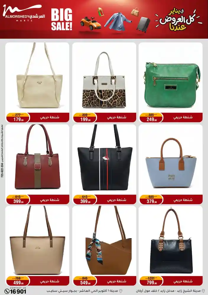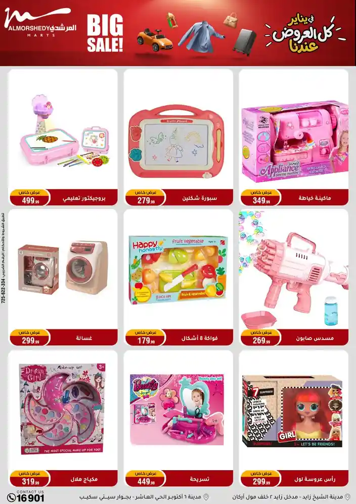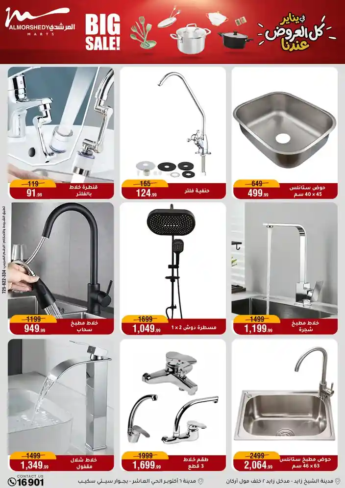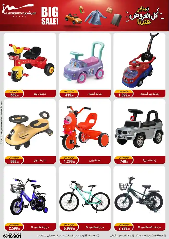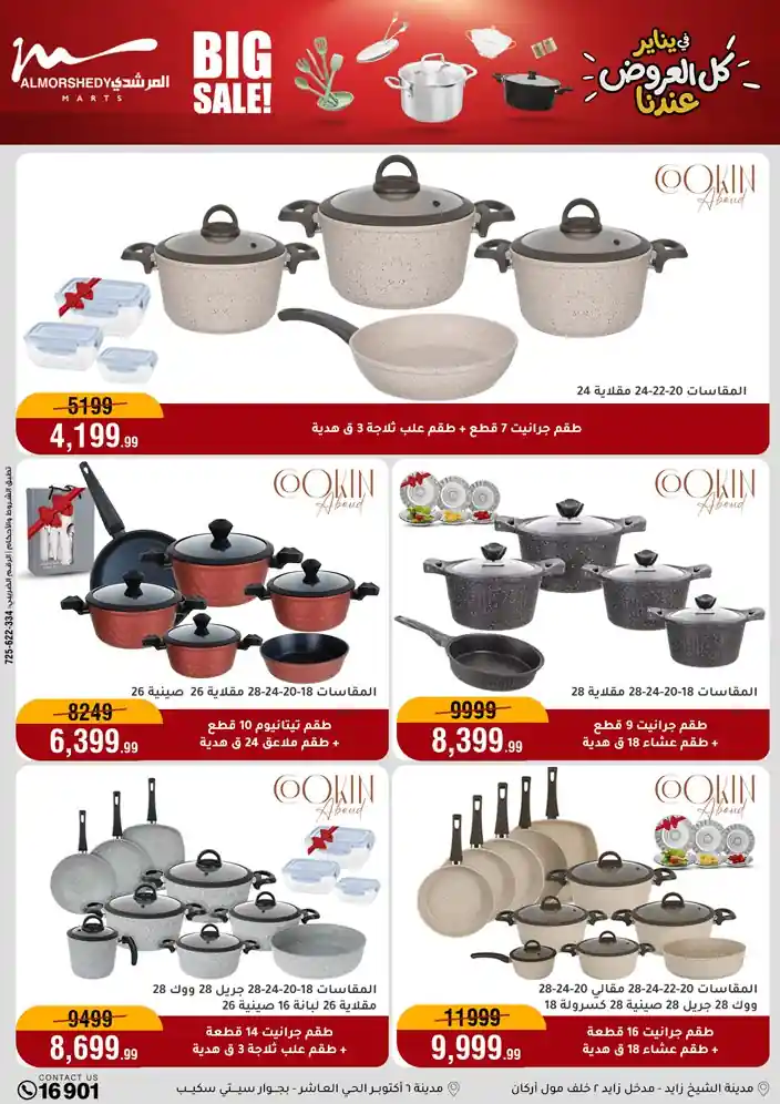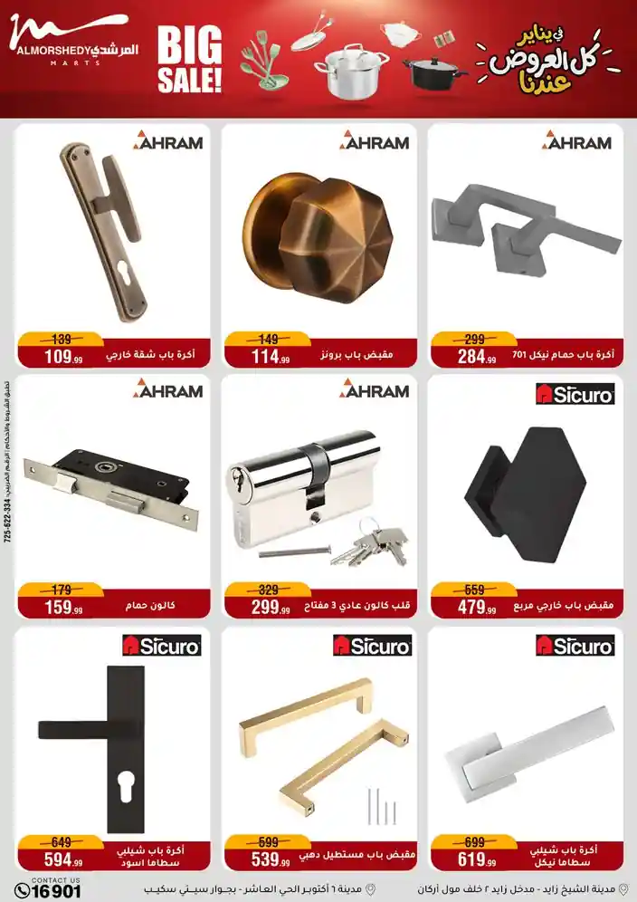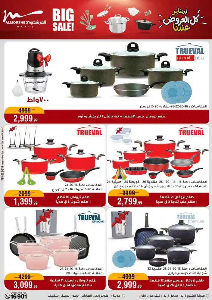 عروض جديدة من أسواق المرشدي  مع اكبر مهرجان للتخفيضات في مصر خصومات حتى 70%  وقسط براحتك بدون فوائد بأسعار العروض المخفضة على 12 شهر لحاملي بطاقة ائتمان CIB أو قسط براحتك مع VALU بدون مقدم حتى 60 شهر أو بدون مقدم وبدون فوائد مع نظام هاتريك وكمان النقل مجاني للقاهرة والجيزة والقليوبية على قسم الأجهزة الكهربائية والموبيليا والمراتب ( تطبق شروط المكان ) خصومات على جميع الأقسام أدوات منزلية – اجهزة كهربائية – مفروشات – موبيليا – نجف – سجاد – مراتب – ملابس رجالي وحريمي وأطفالي ومستلزمات ولعب الأطفال وجاليري وأقسام تانية كتير استمتع بالتسوق في أسواق المرشدي مع أكتر من 12 قسم و أكثر من 10,000 منتج يعني كل اللي بتحلم بيه عند المرشدي هتلاقيه