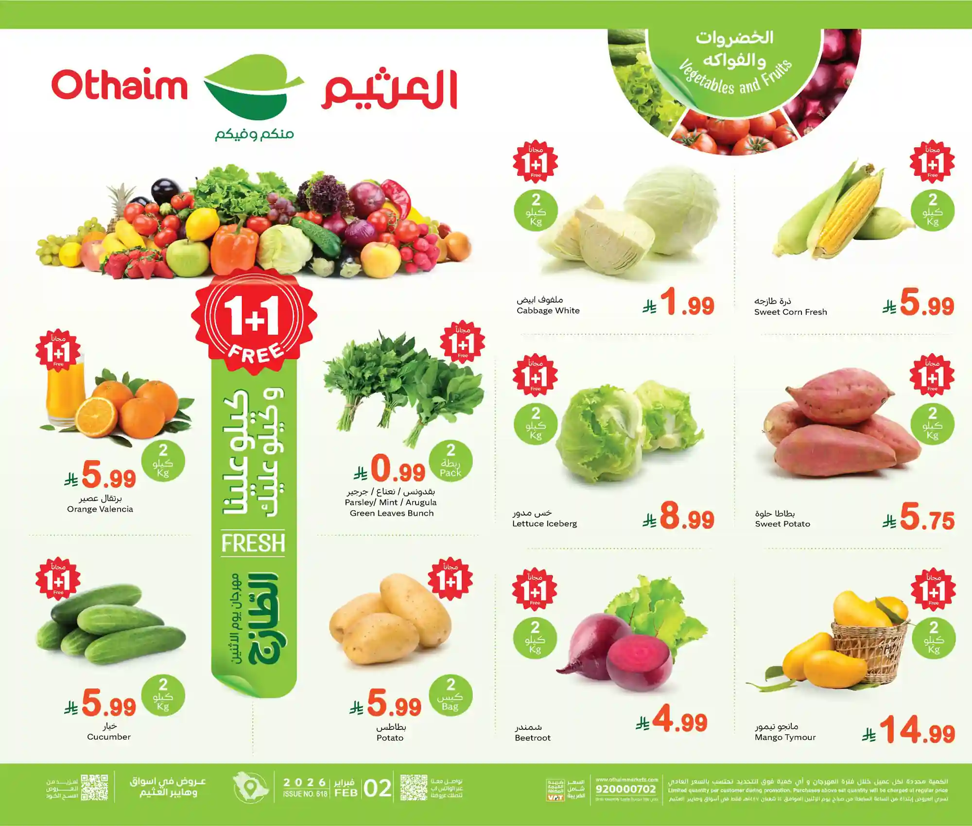 عروض نت تقدم لكم احدث عروض العثيم اليوم الجديدة فى صفحة واحدة – العروض الاسبوعية من اسواق العثيم هايبر ماركت – و ذلك يوم 2 فبراير 2026 مهرجان الطازج او حتى نفاذ الكمية من اسواق عبد الله العثيم السعودية بجميع الفروع.