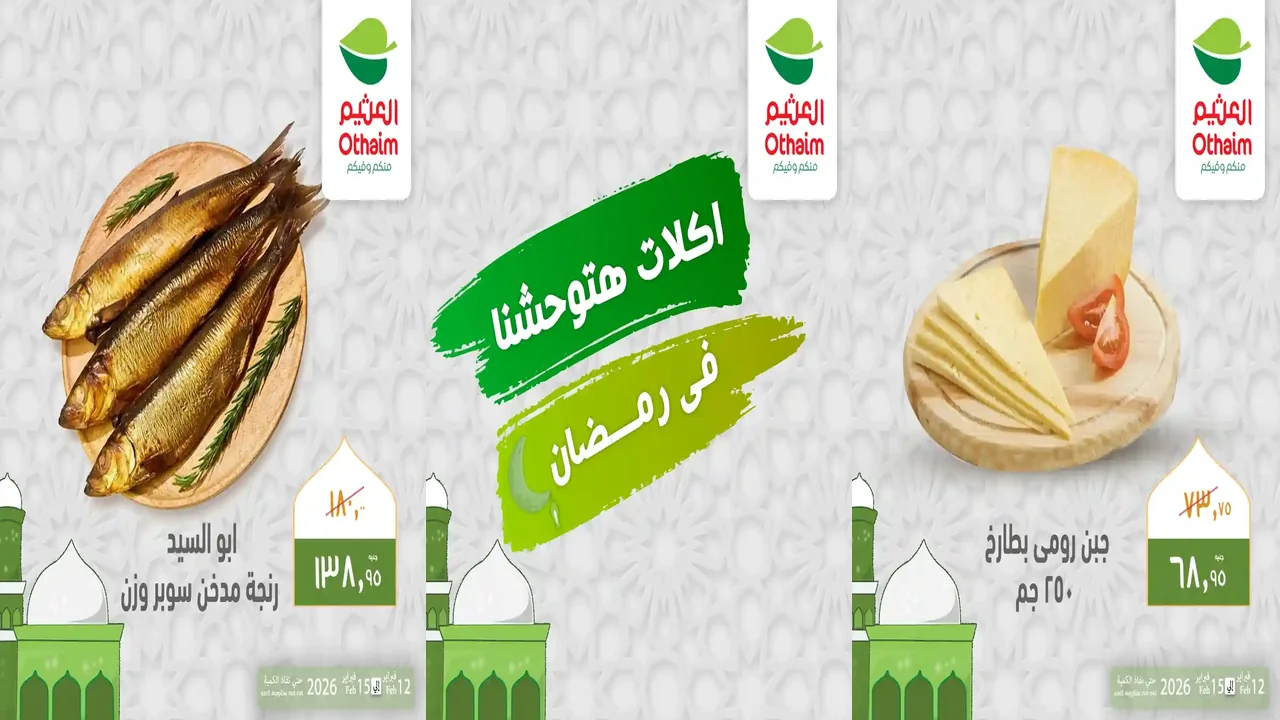 عروض العثيم الجديدة سارية اليوم 12 فبراير حتى 15 فبراير 2026 اكلات هتوحشنا فى رمضان فى جميع الفروع