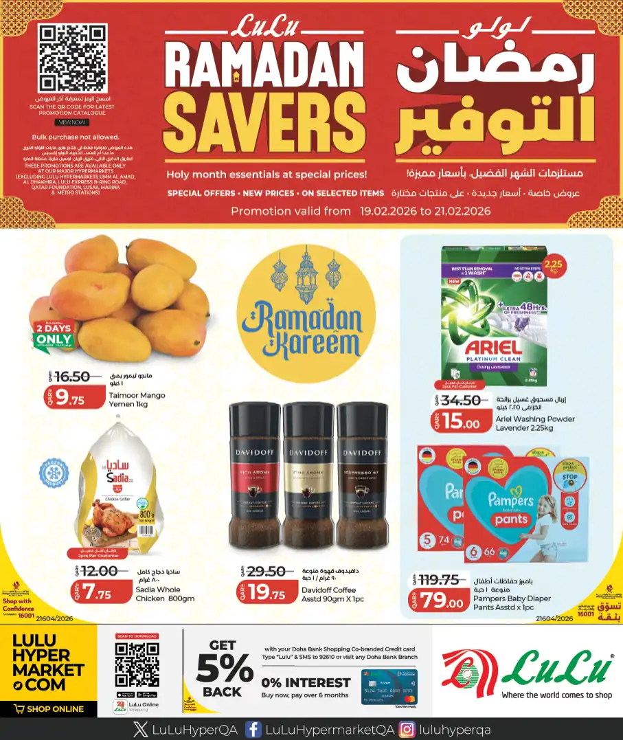 عروض لولو قطر اليوم 19 فبراير حتى 21 فبراير 2026 رمضان التوفير