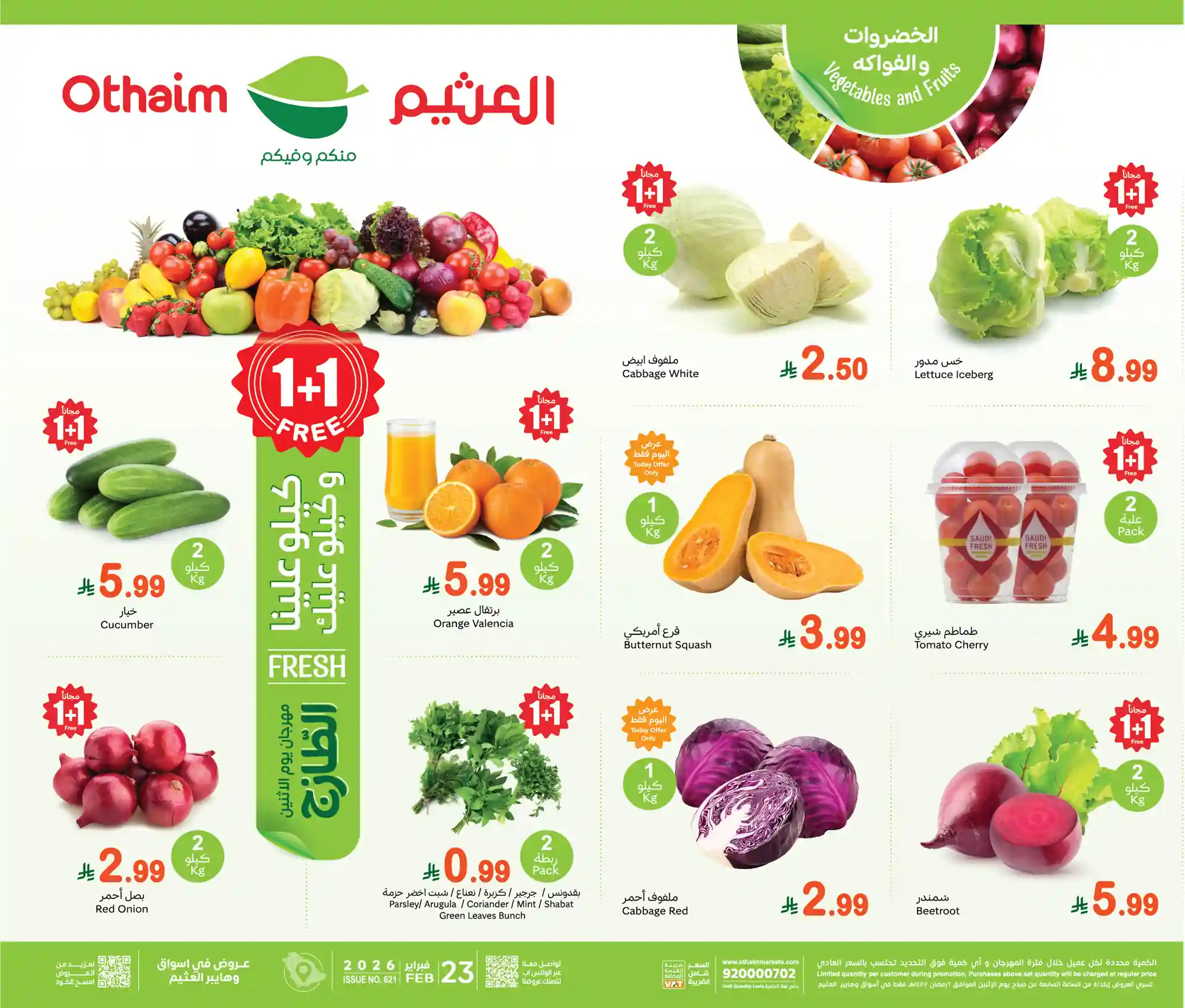عروض نت تقدم لكم احدث عروض العثيم اليوم الجديدة فى صفحة واحدة – العروض الاسبوعية من اسواق العثيم هايبر ماركت – و ذلك يوم 23 فبراير 2026 مهرجان الطازج او حتى نفاذ الكمية من اسواق عبد الله العثيم السعودية بجميع الفروع.