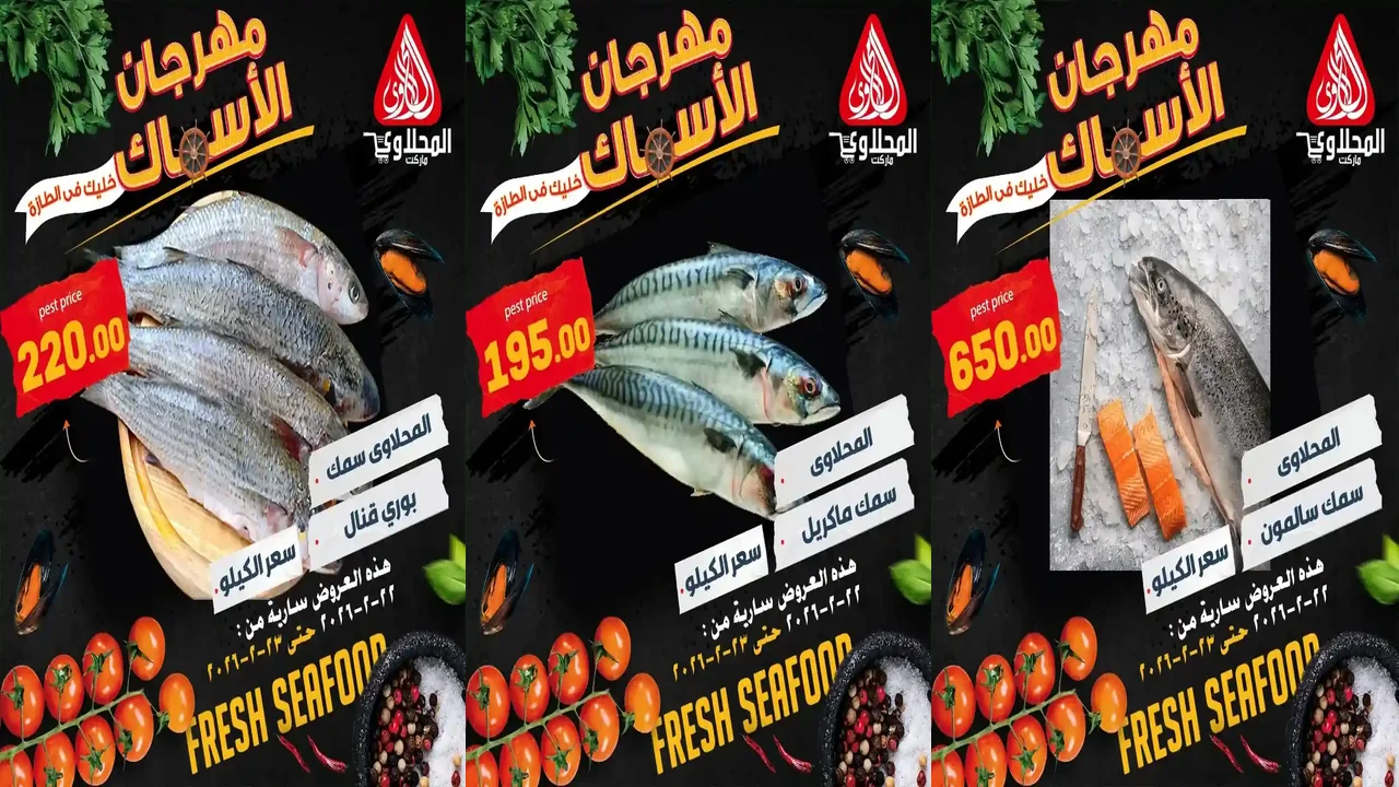 عروض المحلاوى ماركت اليوم 22 فبراير حتى 23 فبراير 2026 مهرجان الاسماك
