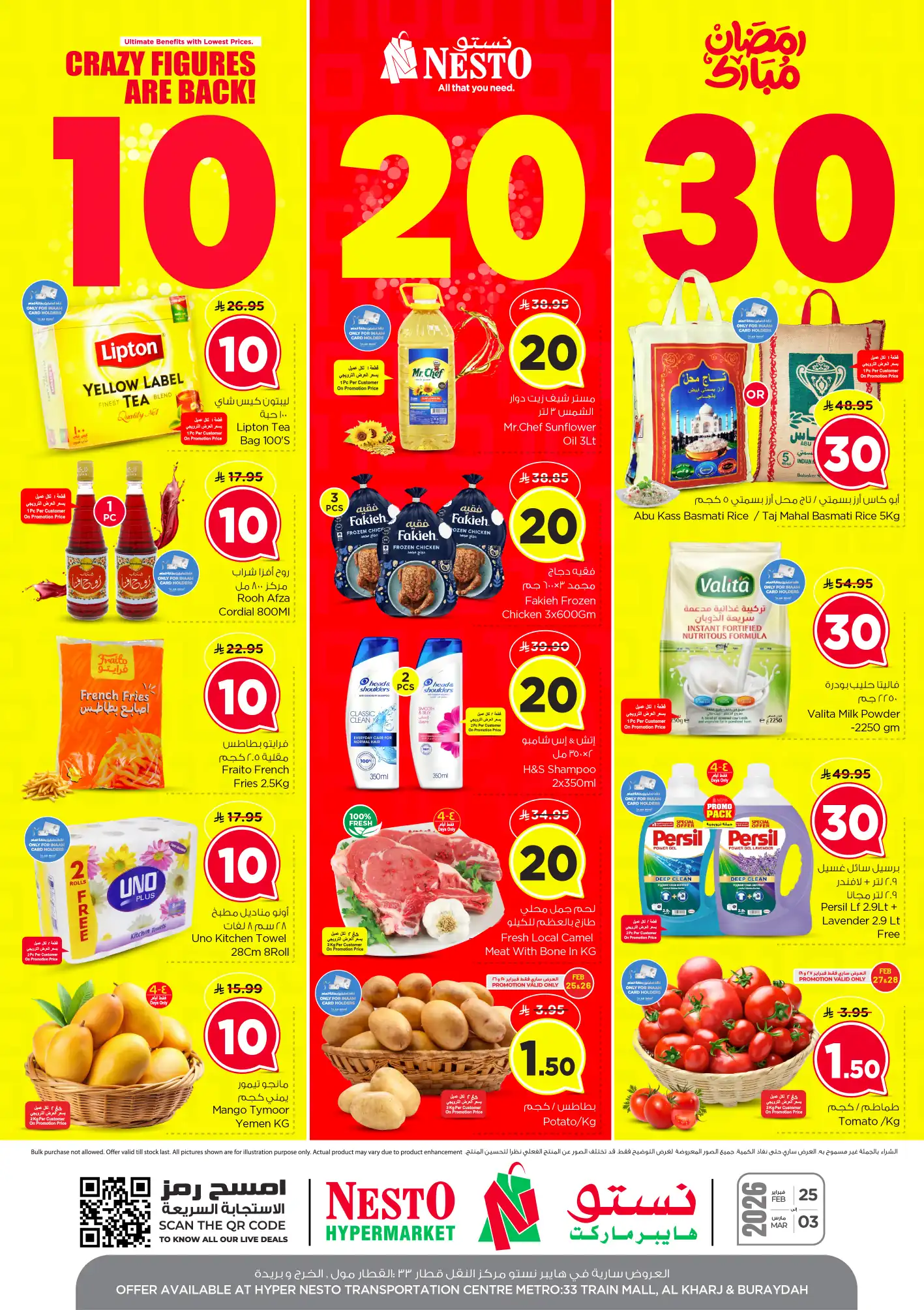 عروض نستو الرياض سارية من 25 فبراير حتى 3 مارس 2026 عروض من 10 ل 30 ريال فى فروع نستو الرياض و نستو البطحاء و نستو العزيزية و نستو المدينة الصناعية و نستو الملز و نستو الرس و نستو شقراء و نستو المجمعة و نستو فيلاجيو مول و نستو بريدة