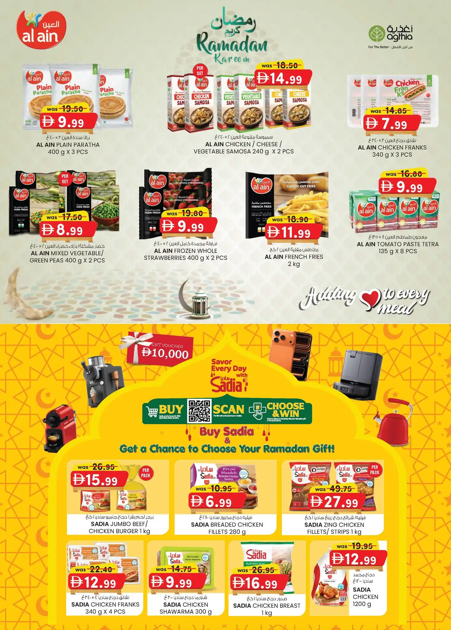 يوفر قسم السوبر ماركت لدينا منتجات الألبان الطازجة والفواكه والخضروات والملاحم والأسماك وطاولات المخابز إلى جانب منتجات الحلويات والبقالة الأخرى. تقدم متاجرنا الكبرى مجموعة واسعة من المنتجات التي تشمل الملابس والأزياء والعطور ولعب الأطفال والأمتعة والأحذية والمستجدات ومستحضرات التجميل والمنتجات المنزلية والساعات والكاميرات والهواتف المحمولة والأدوات الإلكترونية.