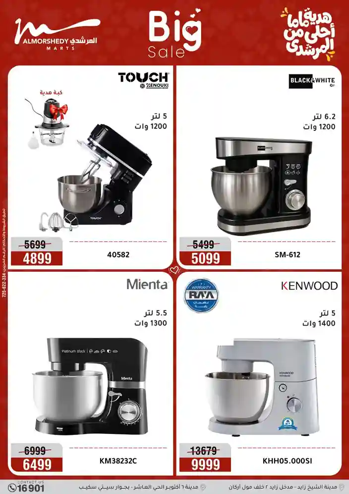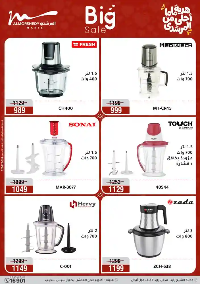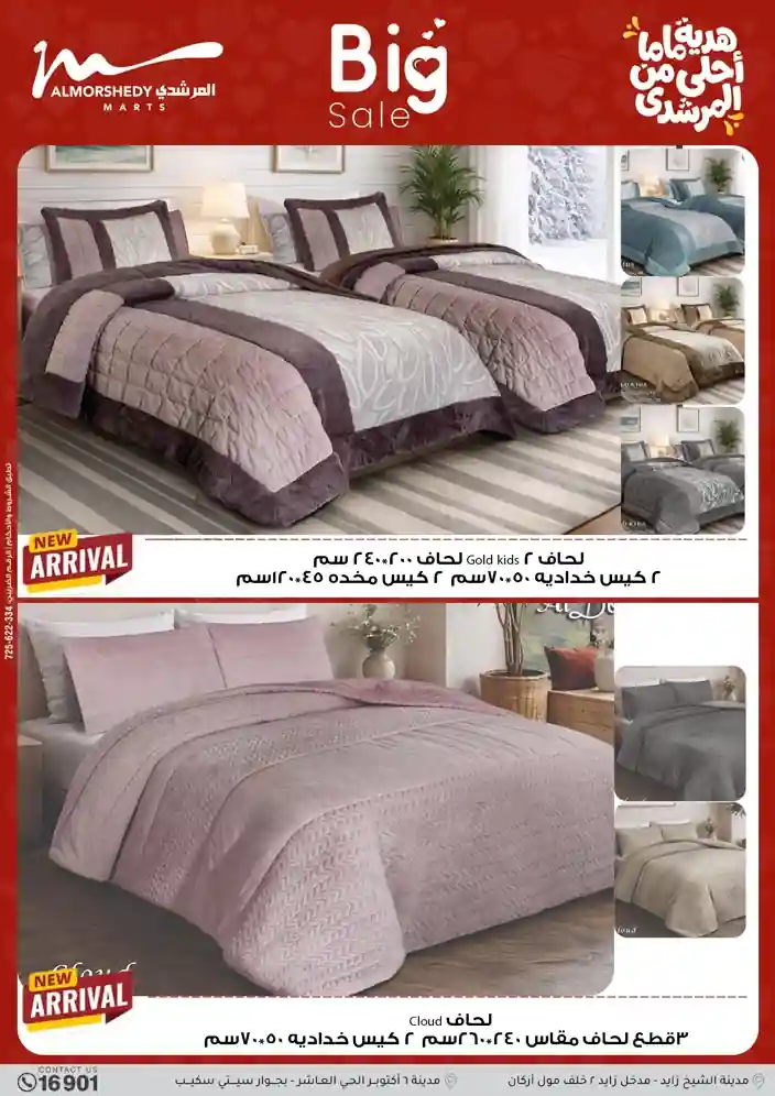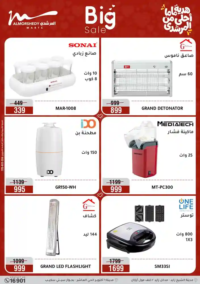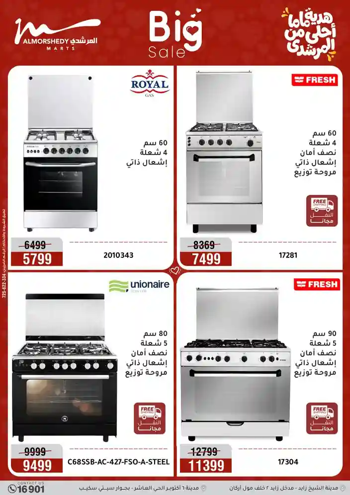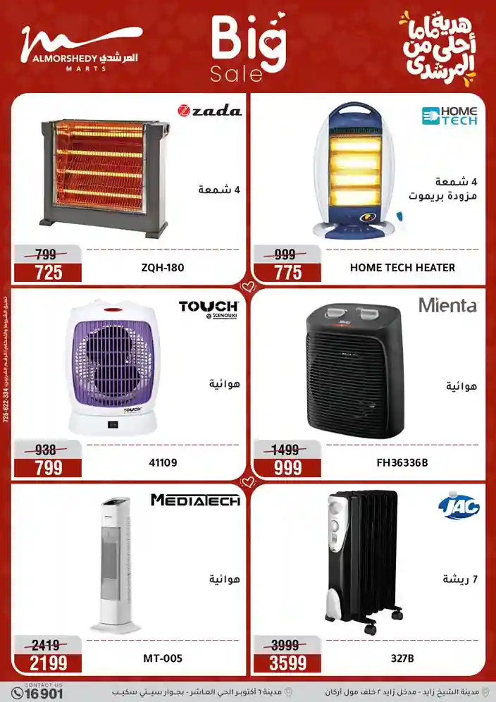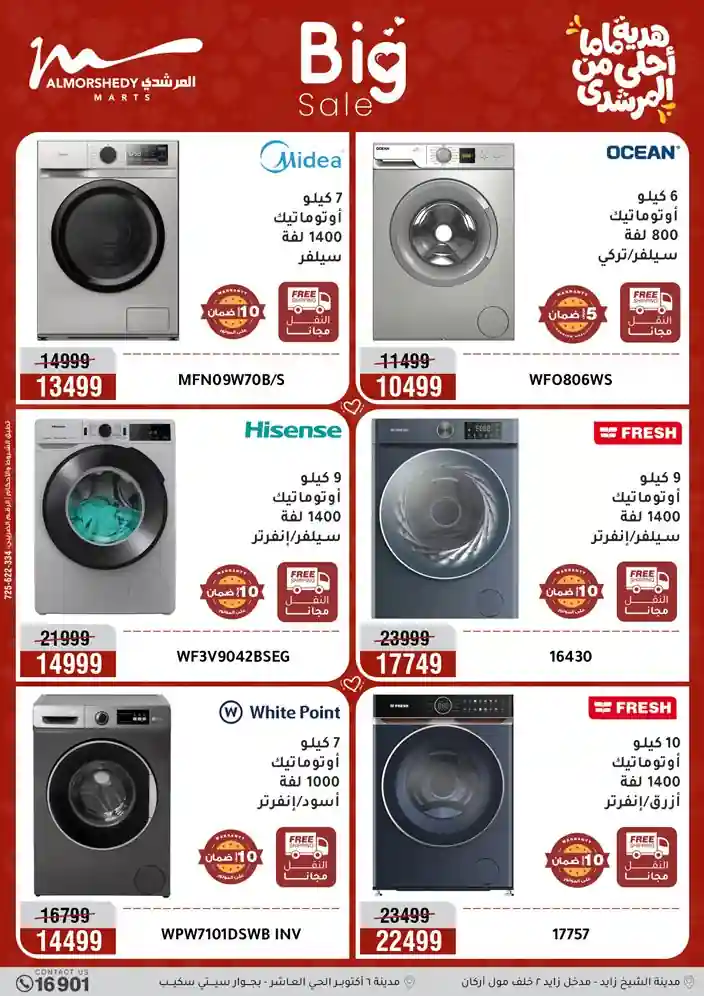 عروض جديدة من أسواق المرشدي مع اكبر مهرجان للتخفيضات في مصر خصومات حتى 70% وقسط براحتك بدون فوائد بأسعار العروض المخفضة على 12 شهر لحاملي بطاقة ائتمان CIB أو قسط براحتك مع VALU بدون مقدم حتى 60 شهر أو بدون مقدم وبدون فوائد مع نظام هاتريك وكمان النقل مجاني للقاهرة والجيزة والقليوبية على قسم الأجهزة الكهربائية والموبيليا والمراتب ( تطبق شروط المكان ) خصومات على جميع الأقسام أدوات منزلية – اجهزة كهربائية – مفروشات – موبيليا – نجف – سجاد – مراتب – ملابس رجالي وحريمي وأطفالي ومستلزمات ولعب الأطفال وجاليري وأقسام تانية كتير استمتع بالتسوق في أسواق المرشدي مع أكتر من 12 قسم و أكثر من 10,000 منتج يعني كل اللي بتحلم بيه عند المرشدي هتلاقيه