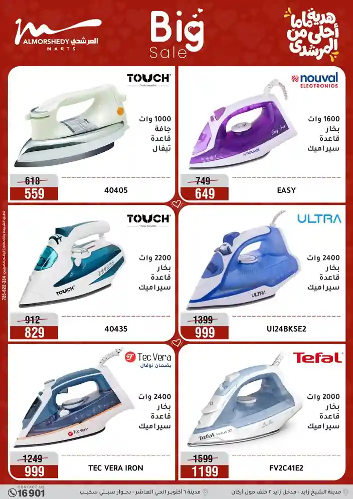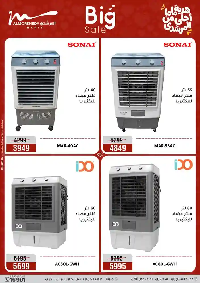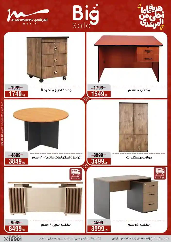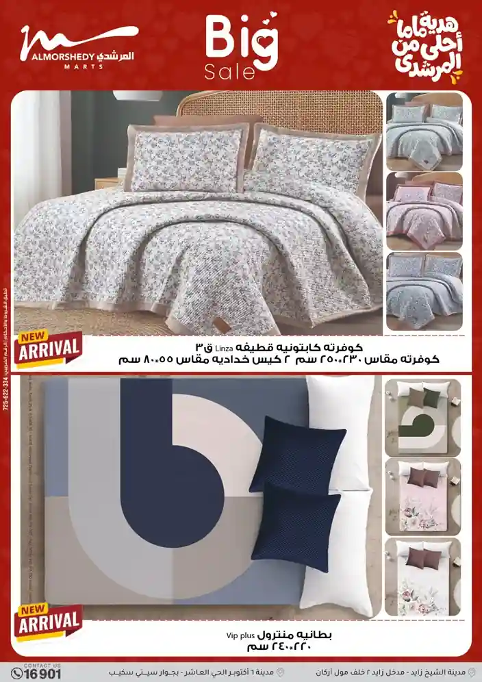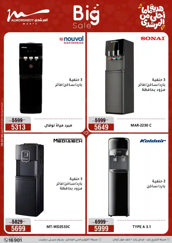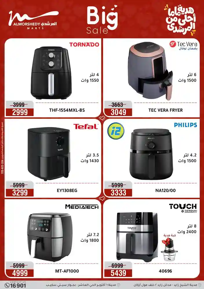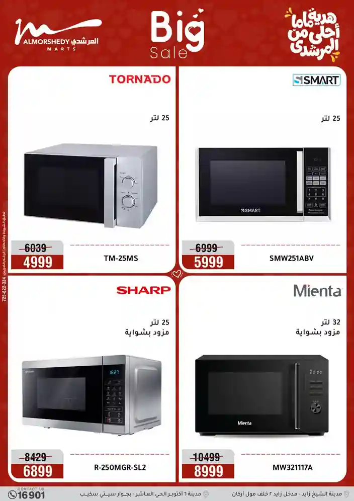 عروض جديدة من أسواق المرشدي مع اكبر مهرجان للتخفيضات في مصر خصومات حتى 70% وقسط براحتك بدون فوائد بأسعار العروض المخفضة على 12 شهر لحاملي بطاقة ائتمان CIB أو قسط براحتك مع VALU بدون مقدم حتى 60 شهر أو بدون مقدم وبدون فوائد مع نظام هاتريك وكمان النقل مجاني للقاهرة والجيزة والقليوبية على قسم الأجهزة الكهربائية والموبيليا والمراتب ( تطبق شروط المكان ) خصومات على جميع الأقسام أدوات منزلية – اجهزة كهربائية – مفروشات – موبيليا – نجف – سجاد – مراتب – ملابس رجالي وحريمي وأطفالي ومستلزمات ولعب الأطفال وجاليري وأقسام تانية كتير استمتع بالتسوق في أسواق المرشدي مع أكتر من 12 قسم و أكثر من 10,000 منتج يعني كل اللي بتحلم بيه عند المرشدي هتلاقيه