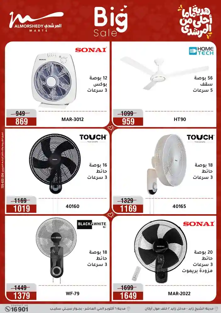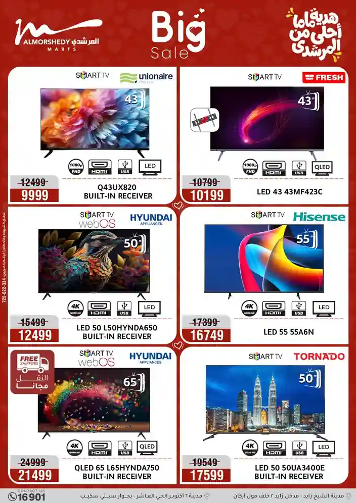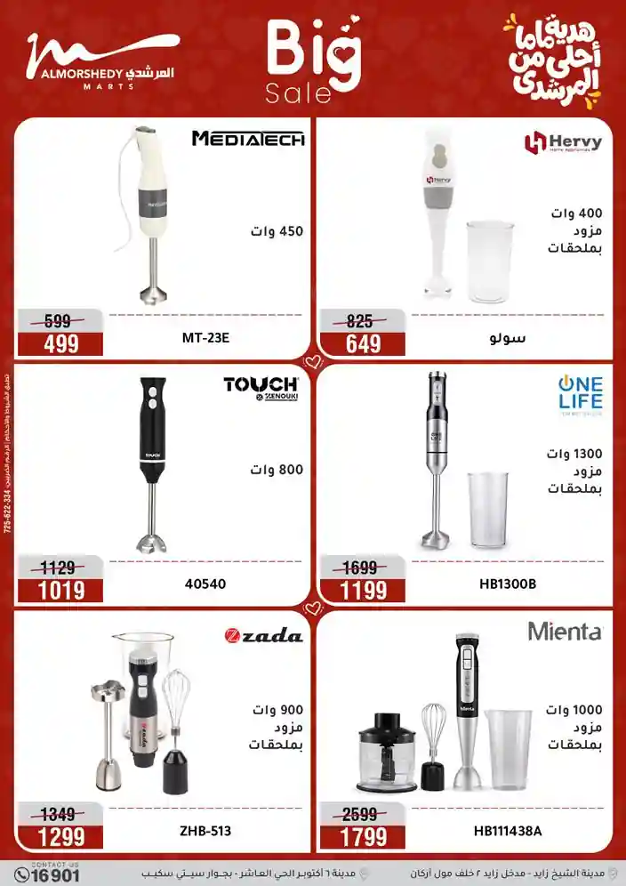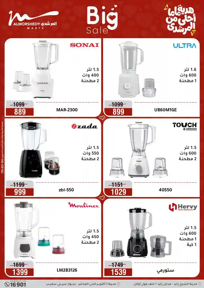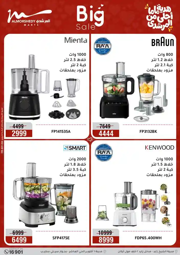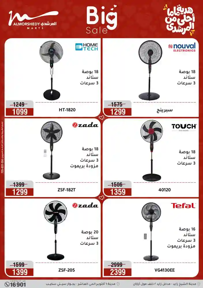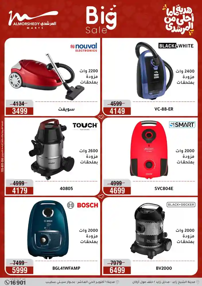 عروض جديدة من أسواق المرشدي مع اكبر مهرجان للتخفيضات في مصر خصومات حتى 70% وقسط براحتك بدون فوائد بأسعار العروض المخفضة على 12 شهر لحاملي بطاقة ائتمان CIB أو قسط براحتك مع VALU بدون مقدم حتى 60 شهر أو بدون مقدم وبدون فوائد مع نظام هاتريك وكمان النقل مجاني للقاهرة والجيزة والقليوبية على قسم الأجهزة الكهربائية والموبيليا والمراتب ( تطبق شروط المكان ) خصومات على جميع الأقسام أدوات منزلية – اجهزة كهربائية – مفروشات – موبيليا – نجف – سجاد – مراتب – ملابس رجالي وحريمي وأطفالي ومستلزمات ولعب الأطفال وجاليري وأقسام تانية كتير استمتع بالتسوق في أسواق المرشدي مع أكتر من 12 قسم و أكثر من 10,000 منتج يعني كل اللي بتحلم بيه عند المرشدي هتلاقيه
