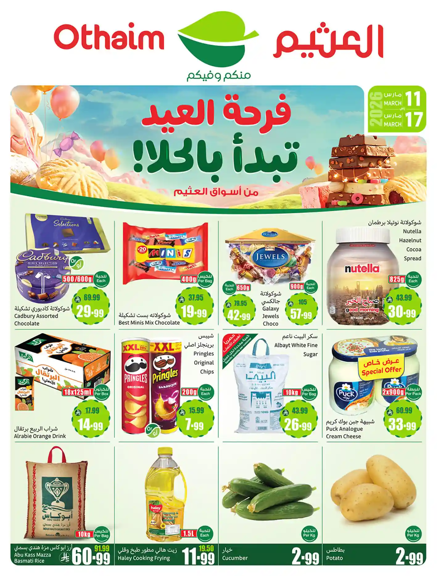 عروض نت تقدم لكم احدث عروض ركن العثيم السعودية الجديدة فى صفحة واحدة – العروض الاسبوعية من ركن العثيم هايبر ماركت – و ذلك من 11 مارس حتى 17 مارس 2026 فرحة العيد او حتى نفاذ الكمية من ركن العثيم السعودية بجميع الفروع.