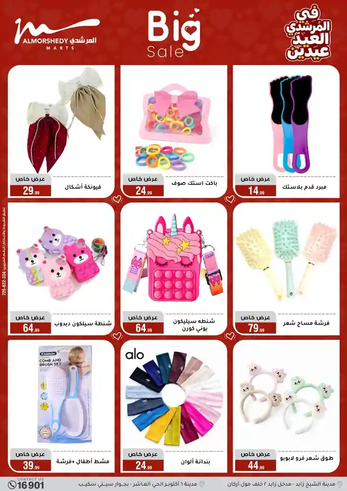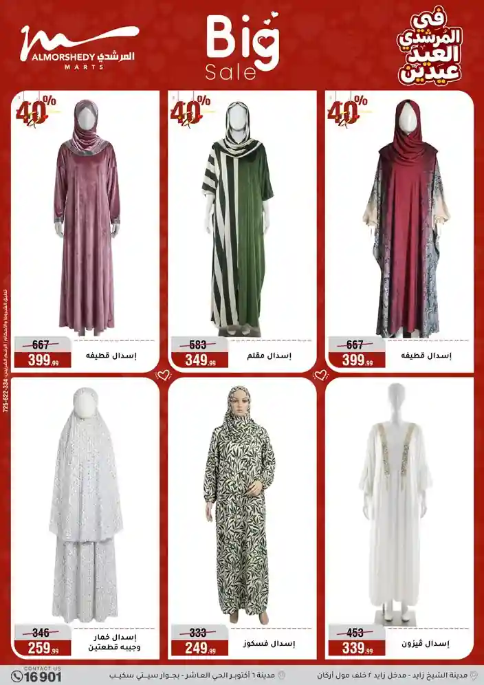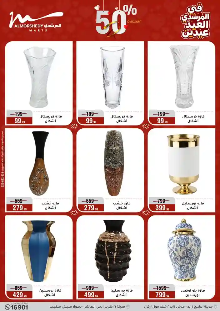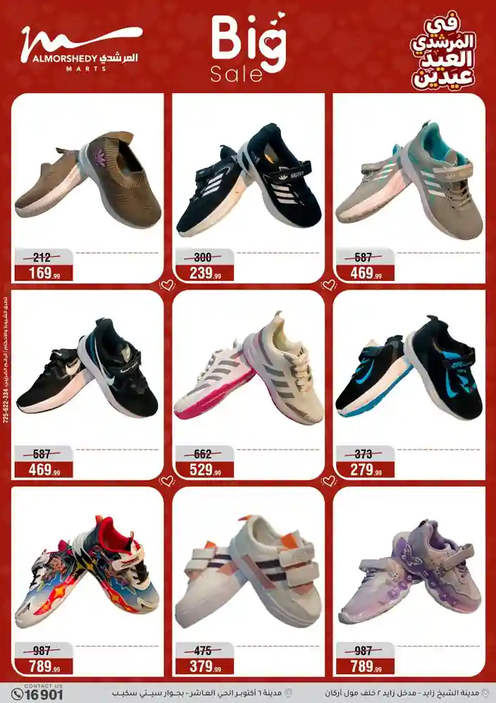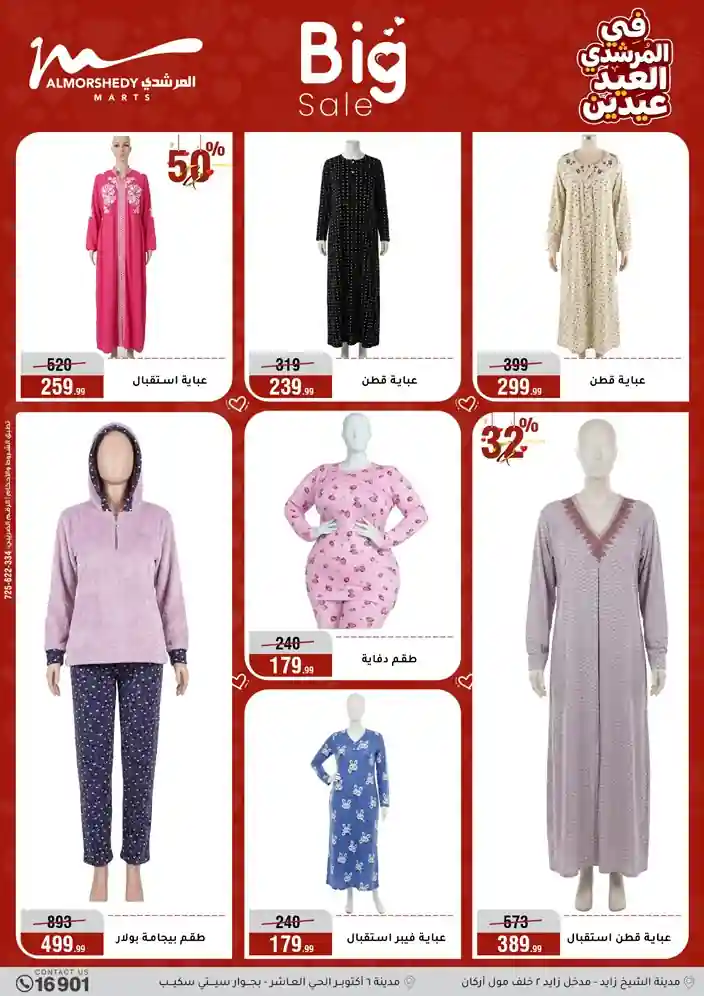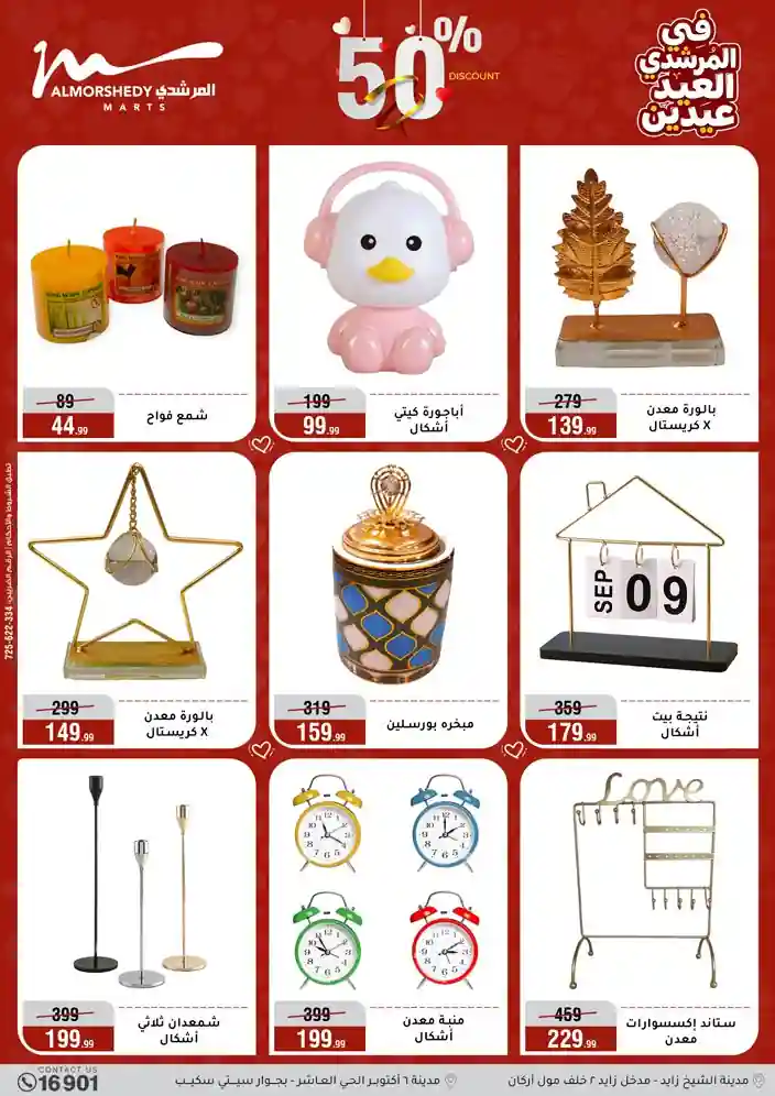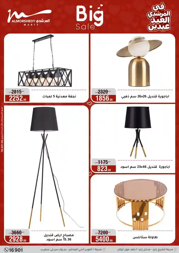 عروض جديدة من أسواق المرشدي مع اكبر مهرجان للتخفيضات في مصر خصومات حتى 70% وقسط براحتك بدون فوائد بأسعار العروض المخفضة على 12 شهر لحاملي بطاقة ائتمان CIB أو قسط براحتك مع VALU بدون مقدم حتى 60 شهر أو بدون مقدم وبدون فوائد مع نظام هاتريك وكمان النقل مجاني للقاهرة والجيزة والقليوبية على قسم الأجهزة الكهربائية والموبيليا والمراتب ( تطبق شروط المكان ) خصومات على جميع الأقسام أدوات منزلية – اجهزة كهربائية – مفروشات – موبيليا – نجف – سجاد – مراتب – ملابس رجالي وحريمي وأطفالي ومستلزمات ولعب الأطفال وجاليري وأقسام تانية كتير استمتع بالتسوق في أسواق المرشدي مع أكتر من 12 قسم و أكثر من 10,000 منتج يعني كل اللي بتحلم بيه عند المرشدي هتلاقيه