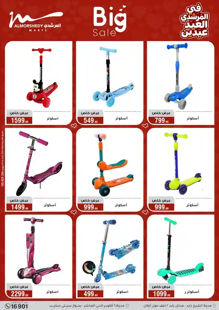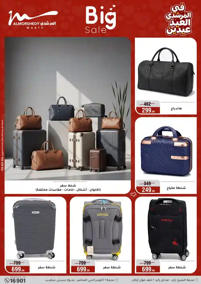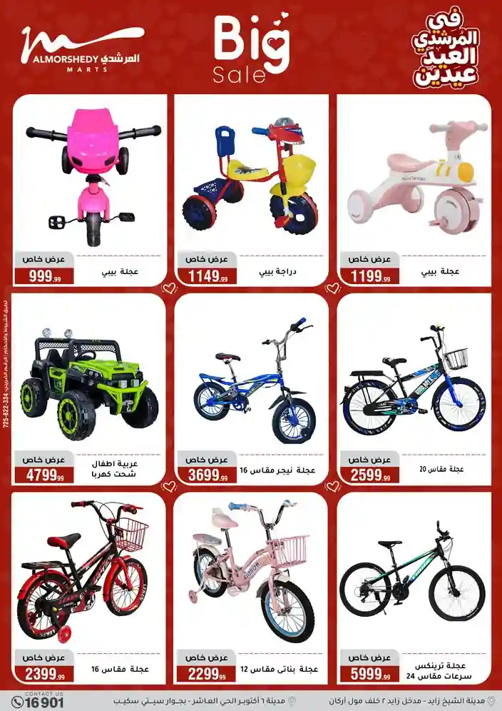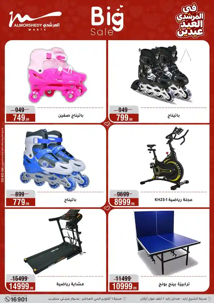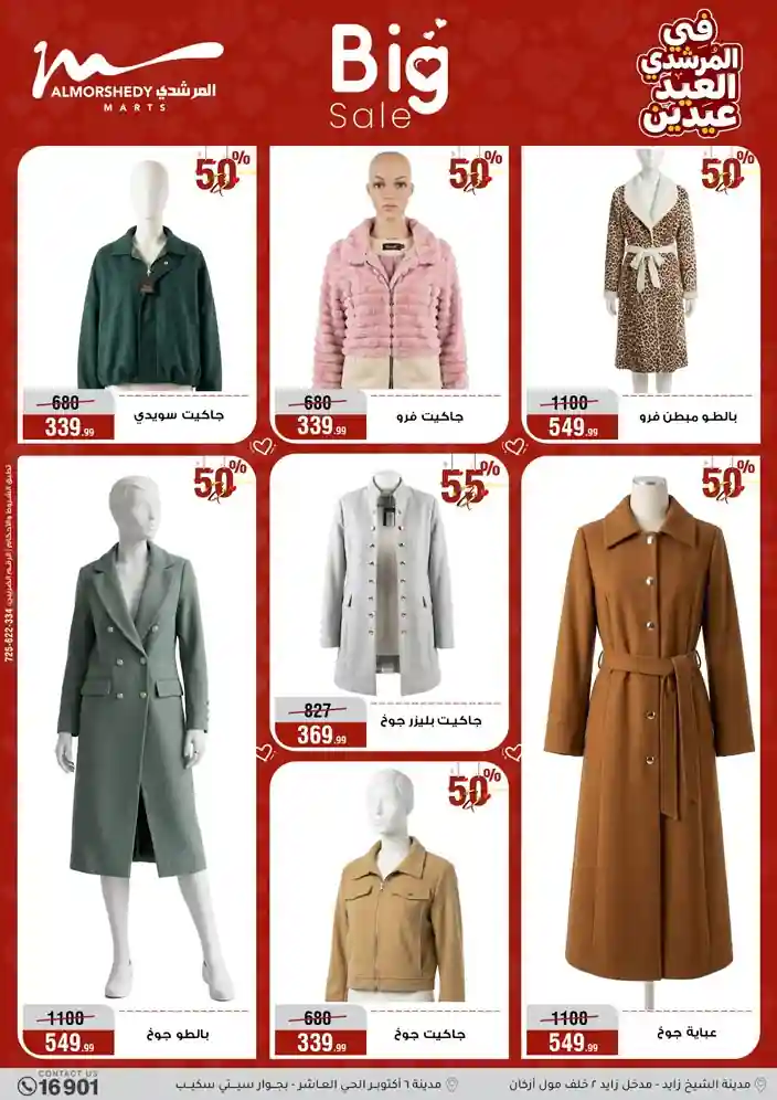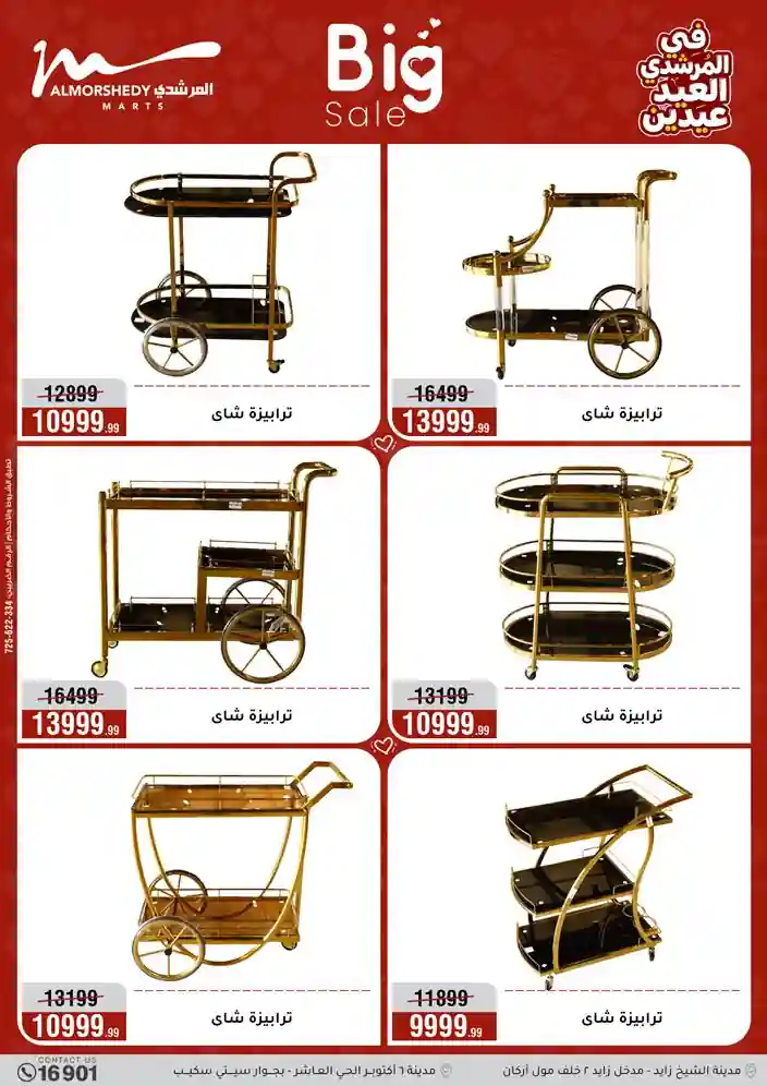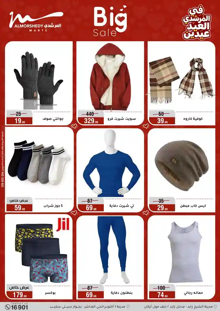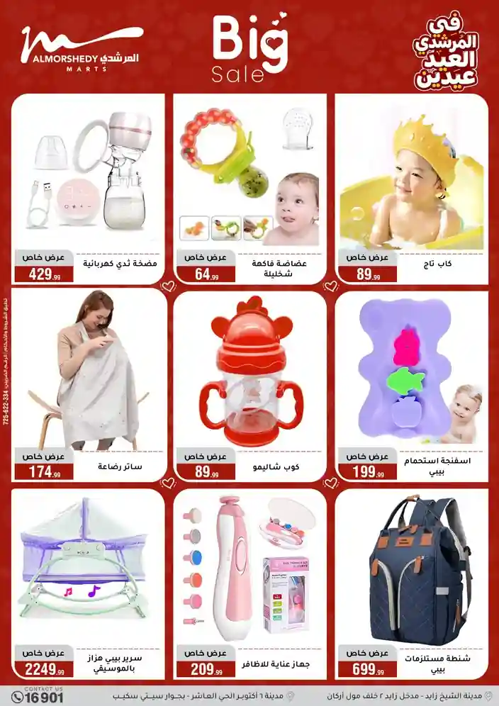عروض جديدة من أسواق المرشدي مع اكبر مهرجان للتخفيضات في مصر خصومات حتى 70% وقسط براحتك بدون فوائد بأسعار العروض المخفضة على 12 شهر لحاملي بطاقة ائتمان CIB أو قسط براحتك مع VALU بدون مقدم حتى 60 شهر أو بدون مقدم وبدون فوائد مع نظام هاتريك وكمان النقل مجاني للقاهرة والجيزة والقليوبية على قسم الأجهزة الكهربائية والموبيليا والمراتب ( تطبق شروط المكان ) خصومات على جميع الأقسام أدوات منزلية – اجهزة كهربائية – مفروشات – موبيليا – نجف – سجاد – مراتب – ملابس رجالي وحريمي وأطفالي ومستلزمات ولعب الأطفال وجاليري وأقسام تانية كتير استمتع بالتسوق في أسواق المرشدي مع أكتر من 12 قسم و أكثر من 10,000 منتج يعني كل اللي بتحلم بيه عند المرشدي هتلاقيه