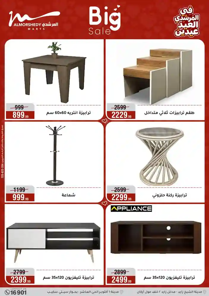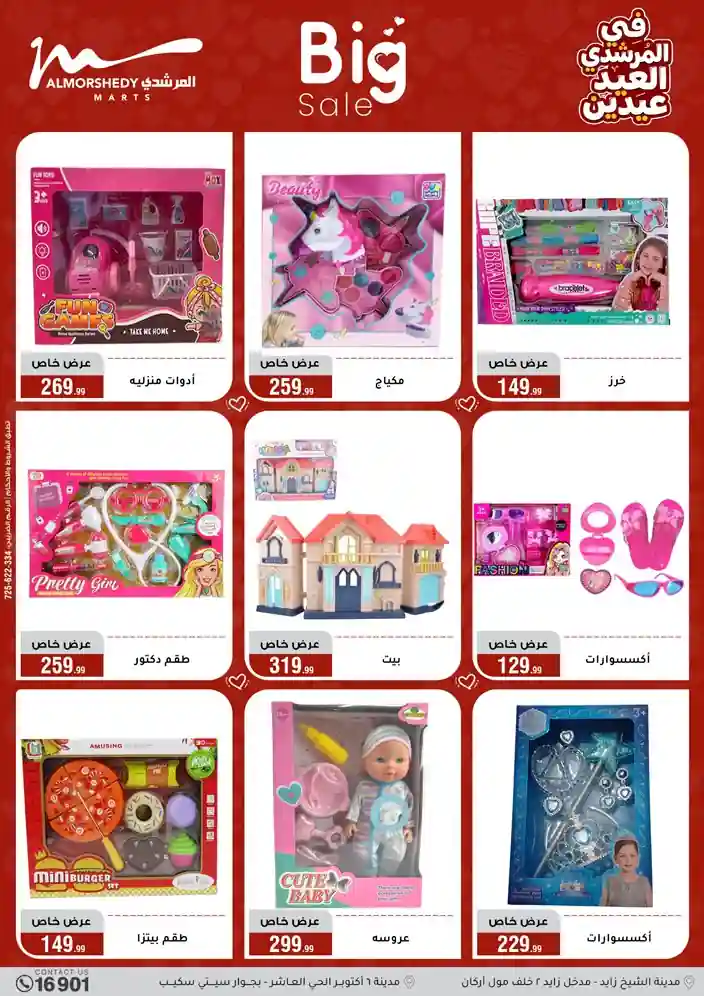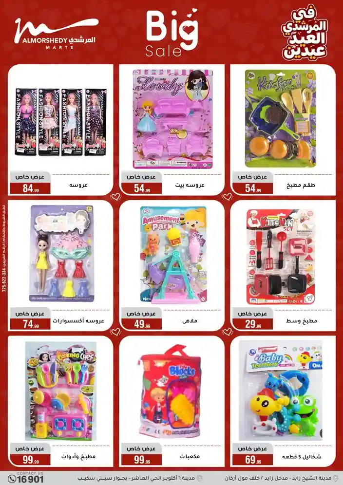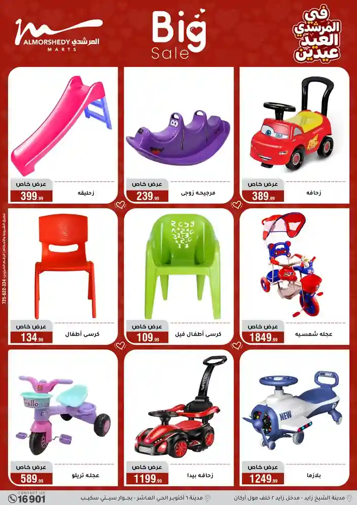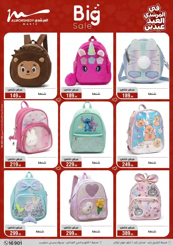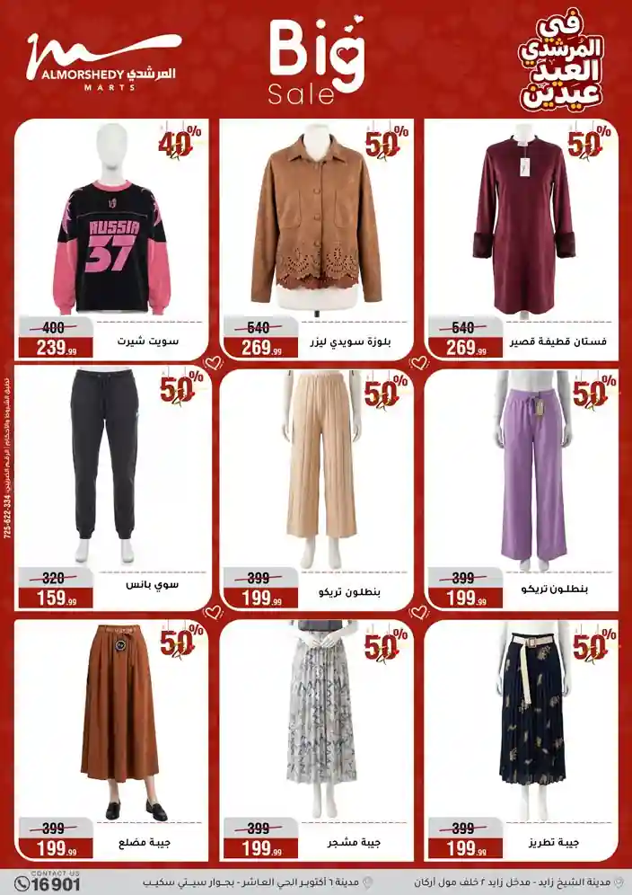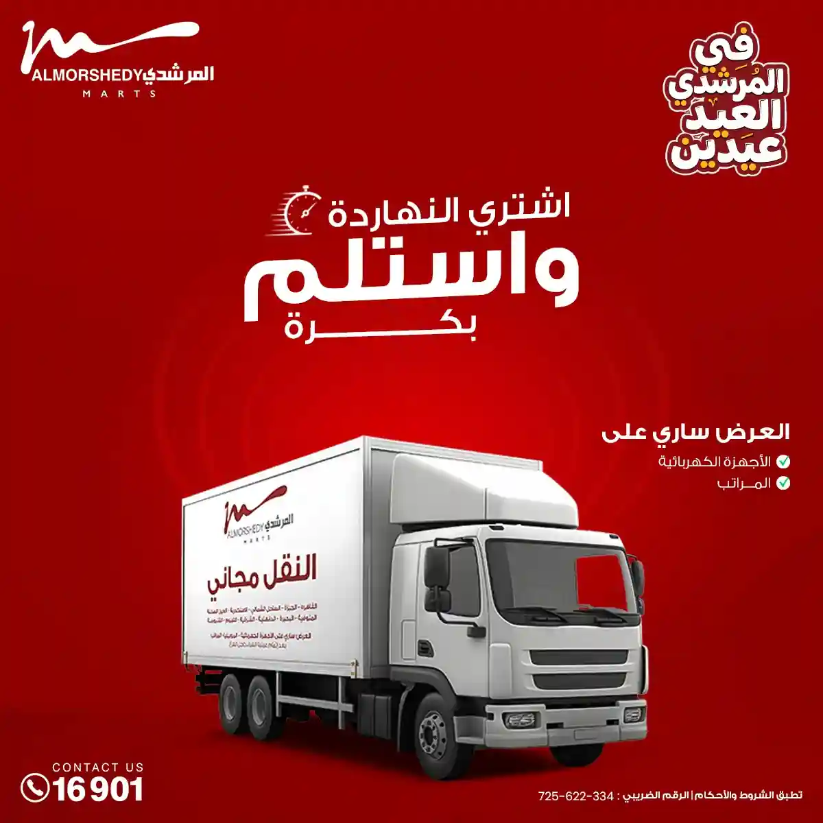 عروض جديدة من أسواق المرشدي مع اكبر مهرجان للتخفيضات في مصر خصومات حتى 70% وقسط براحتك بدون فوائد بأسعار العروض المخفضة على 12 شهر لحاملي بطاقة ائتمان CIB أو قسط براحتك مع VALU بدون مقدم حتى 60 شهر أو بدون مقدم وبدون فوائد مع نظام هاتريك وكمان النقل مجاني للقاهرة والجيزة والقليوبية على قسم الأجهزة الكهربائية والموبيليا والمراتب ( تطبق شروط المكان ) خصومات على جميع الأقسام أدوات منزلية – اجهزة كهربائية – مفروشات – موبيليا – نجف – سجاد – مراتب – ملابس رجالي وحريمي وأطفالي ومستلزمات ولعب الأطفال وجاليري وأقسام تانية كتير استمتع بالتسوق في أسواق المرشدي مع أكتر من 12 قسم و أكثر من 10,000 منتج يعني كل اللي بتحلم بيه عند المرشدي هتلاقيه