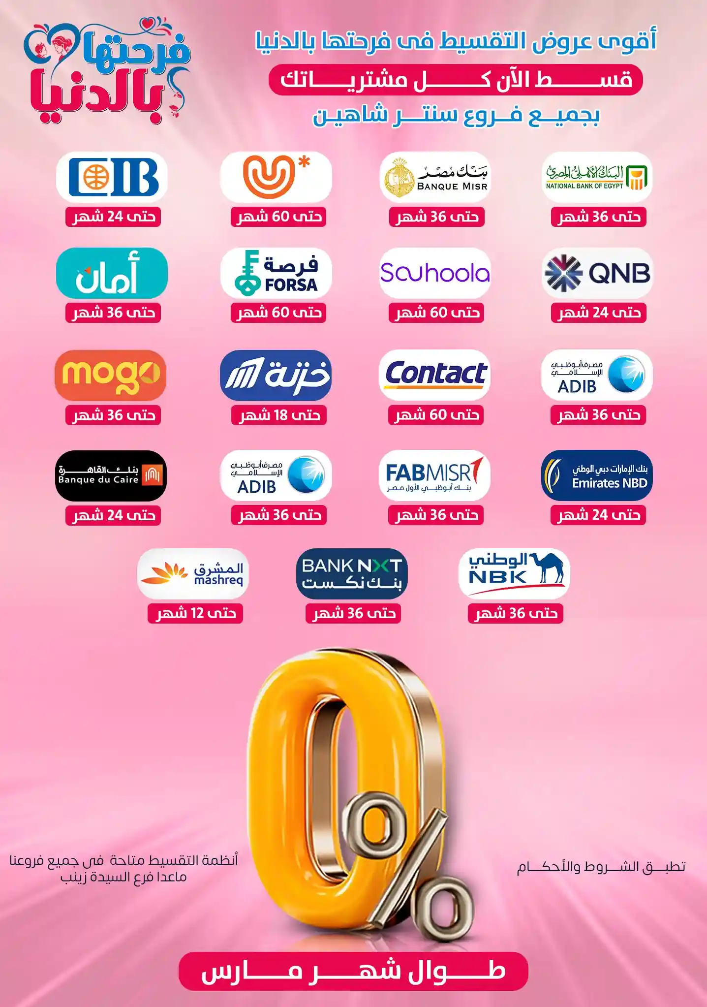وغيرها من العروض المختلفة التى تسرى فى كل فروع سنتر شاهين